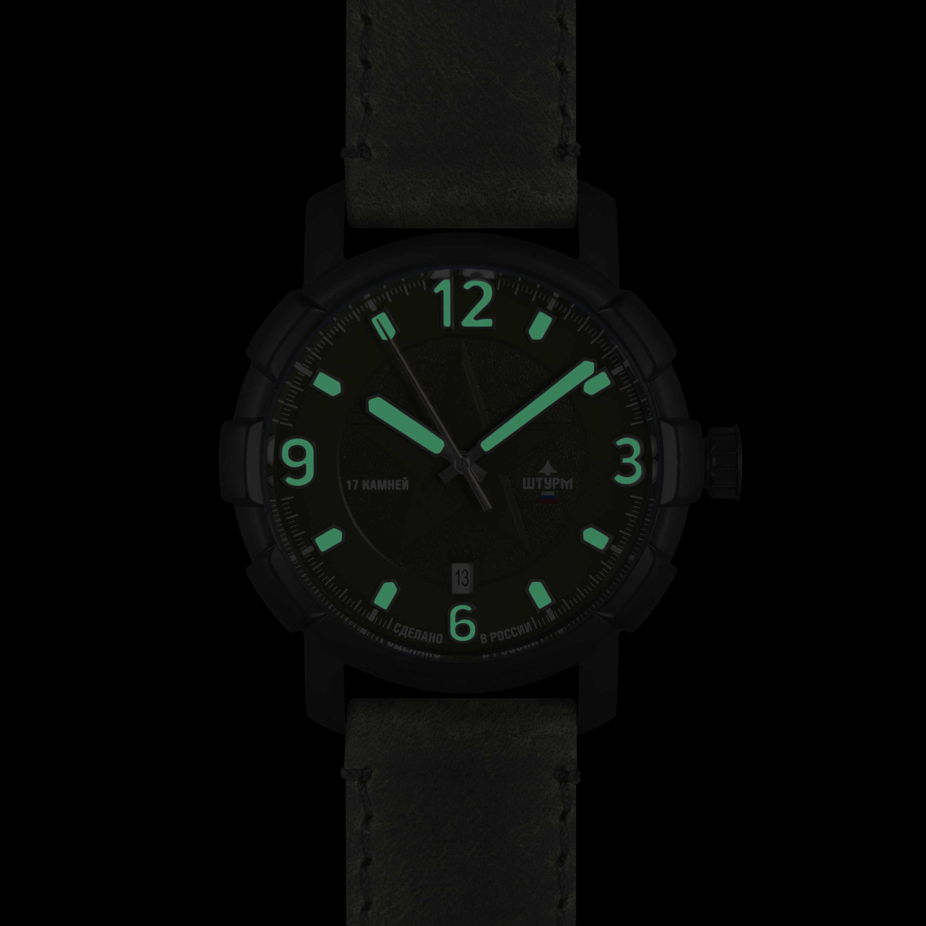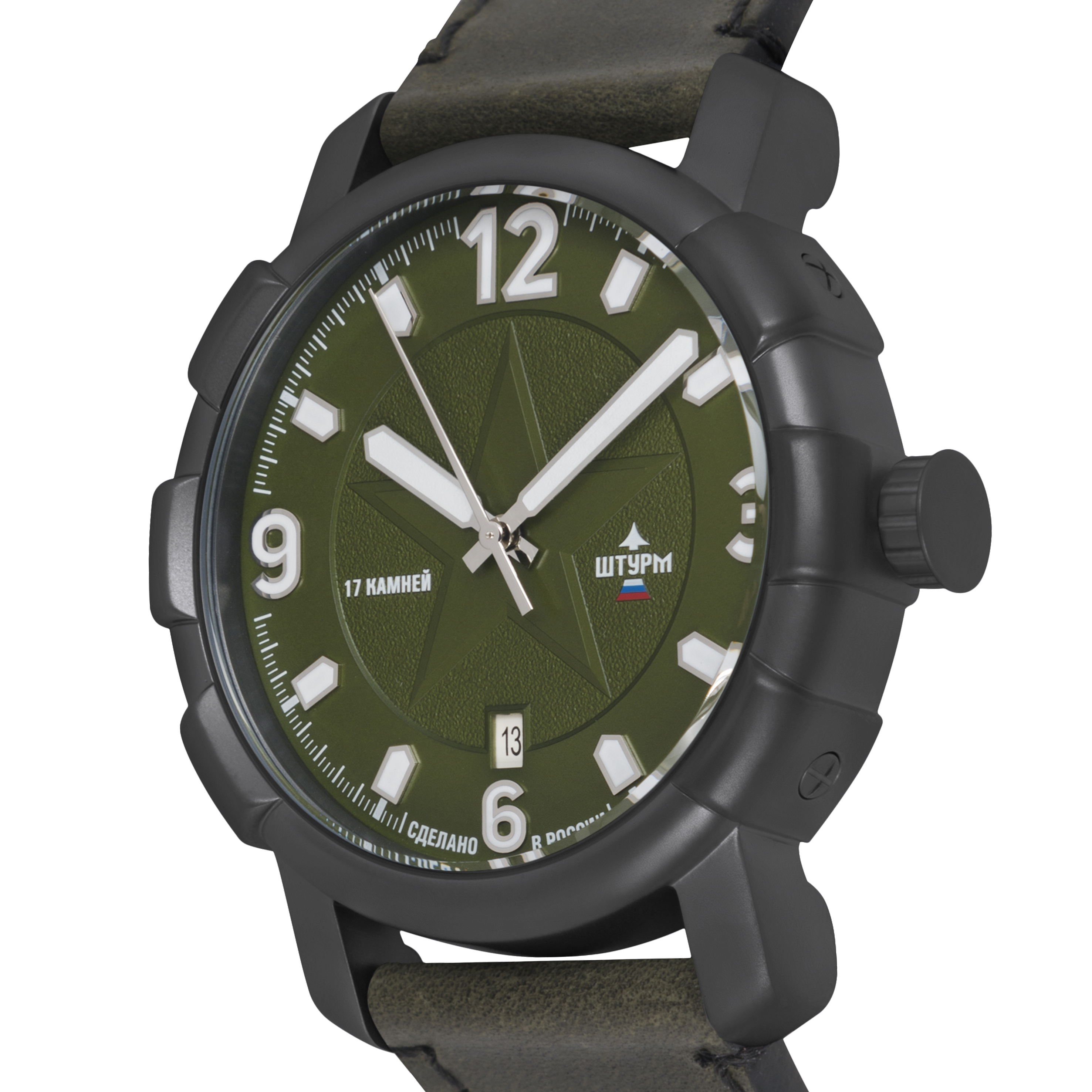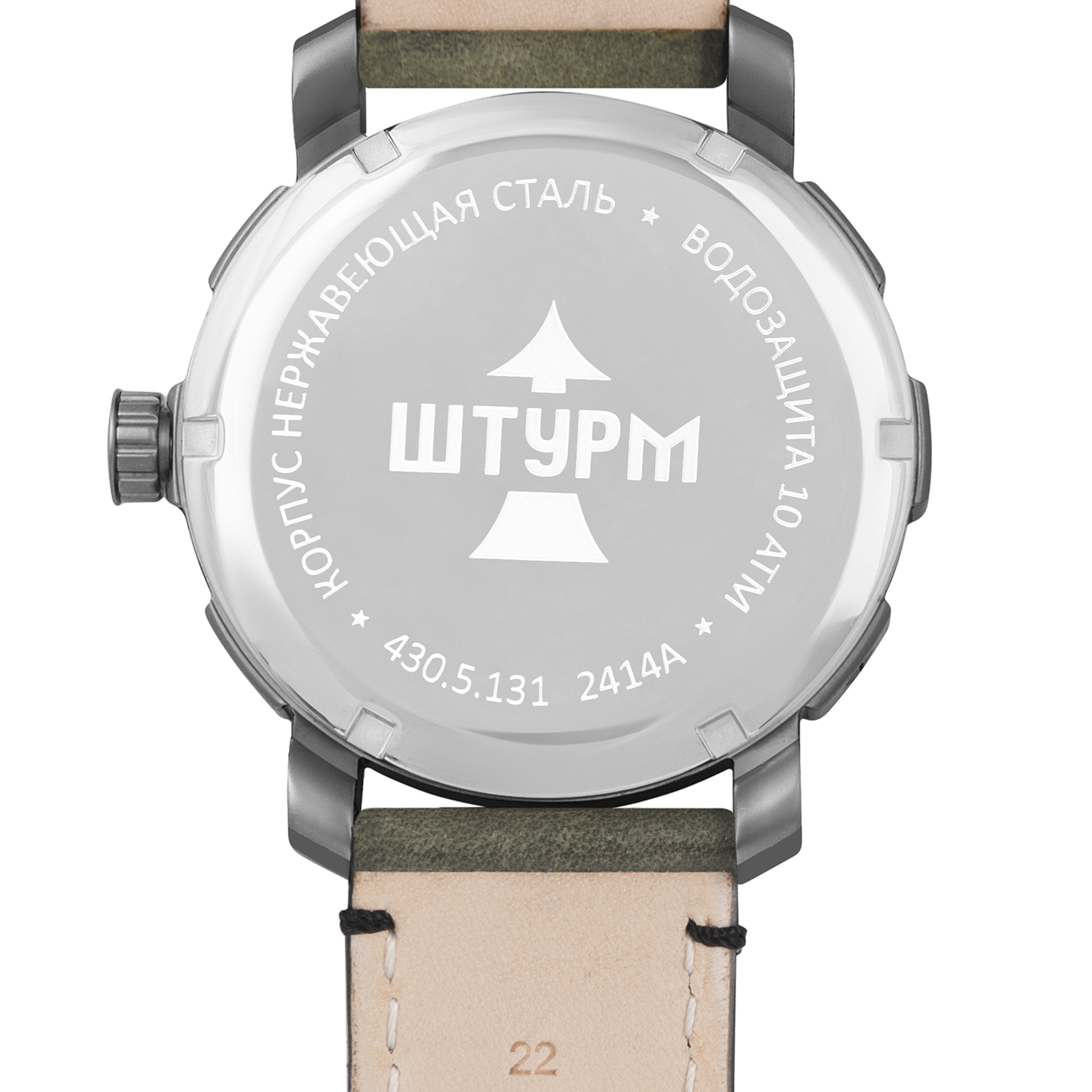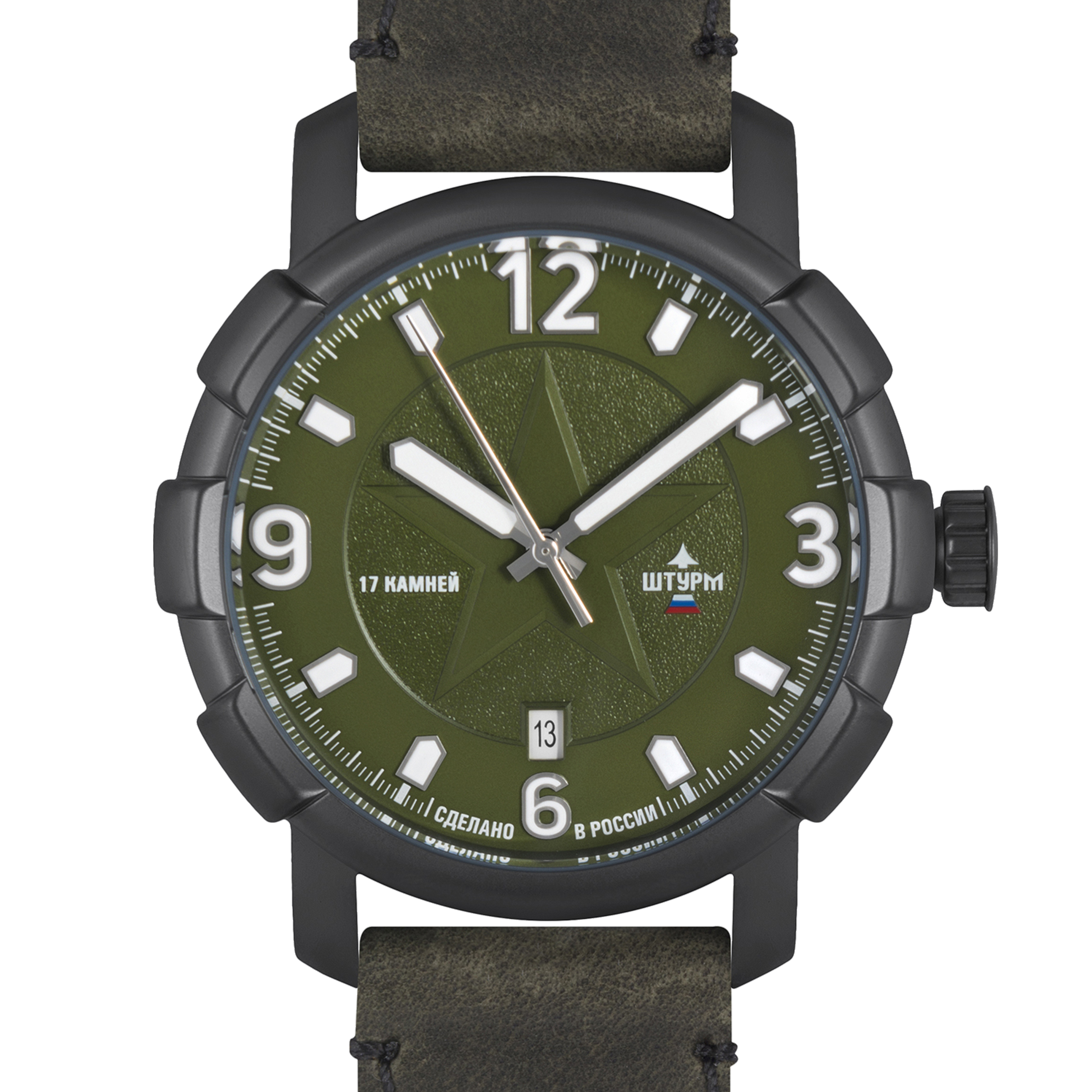 Наручные механические часы Штурм зелено-серые, с темно-зеленым ремешком