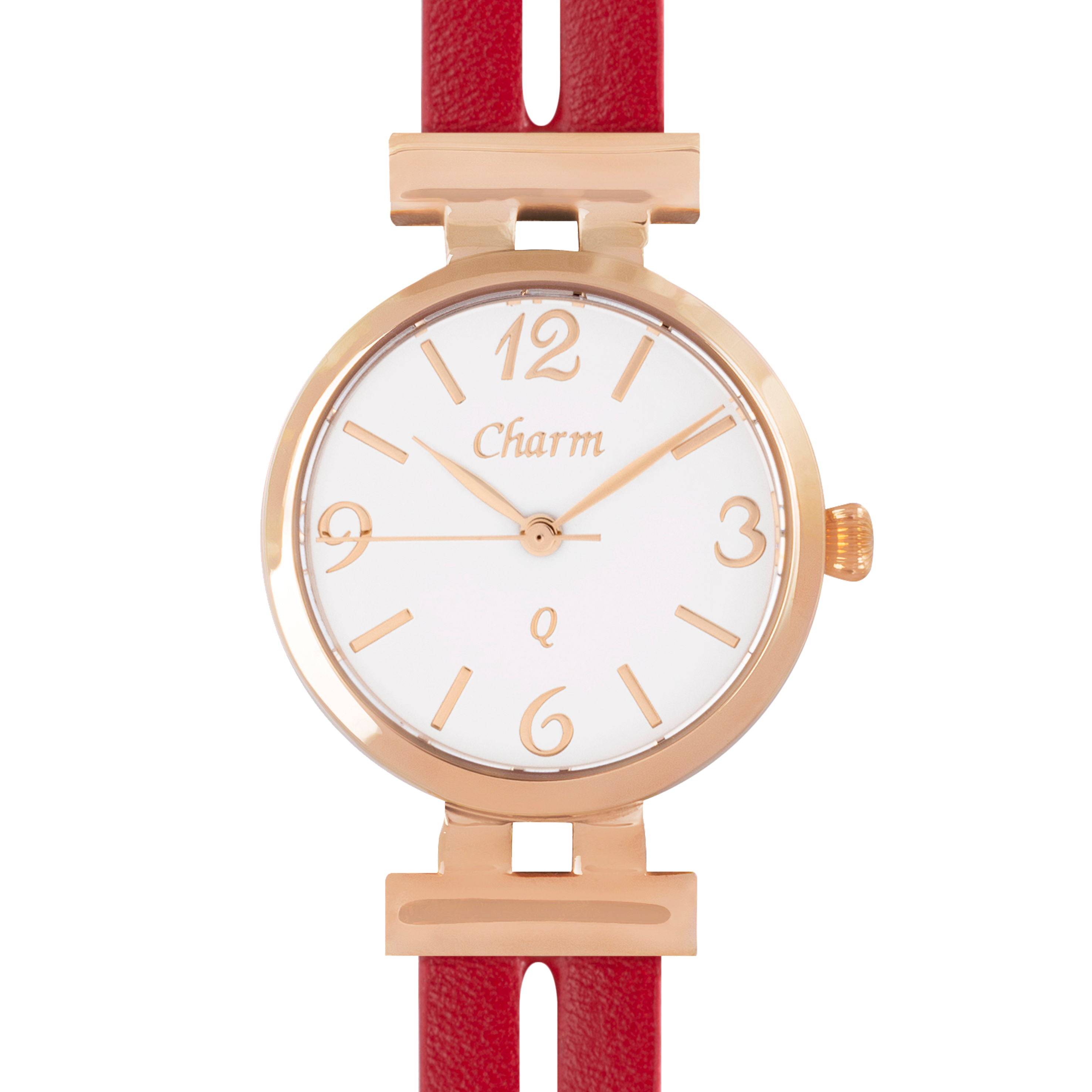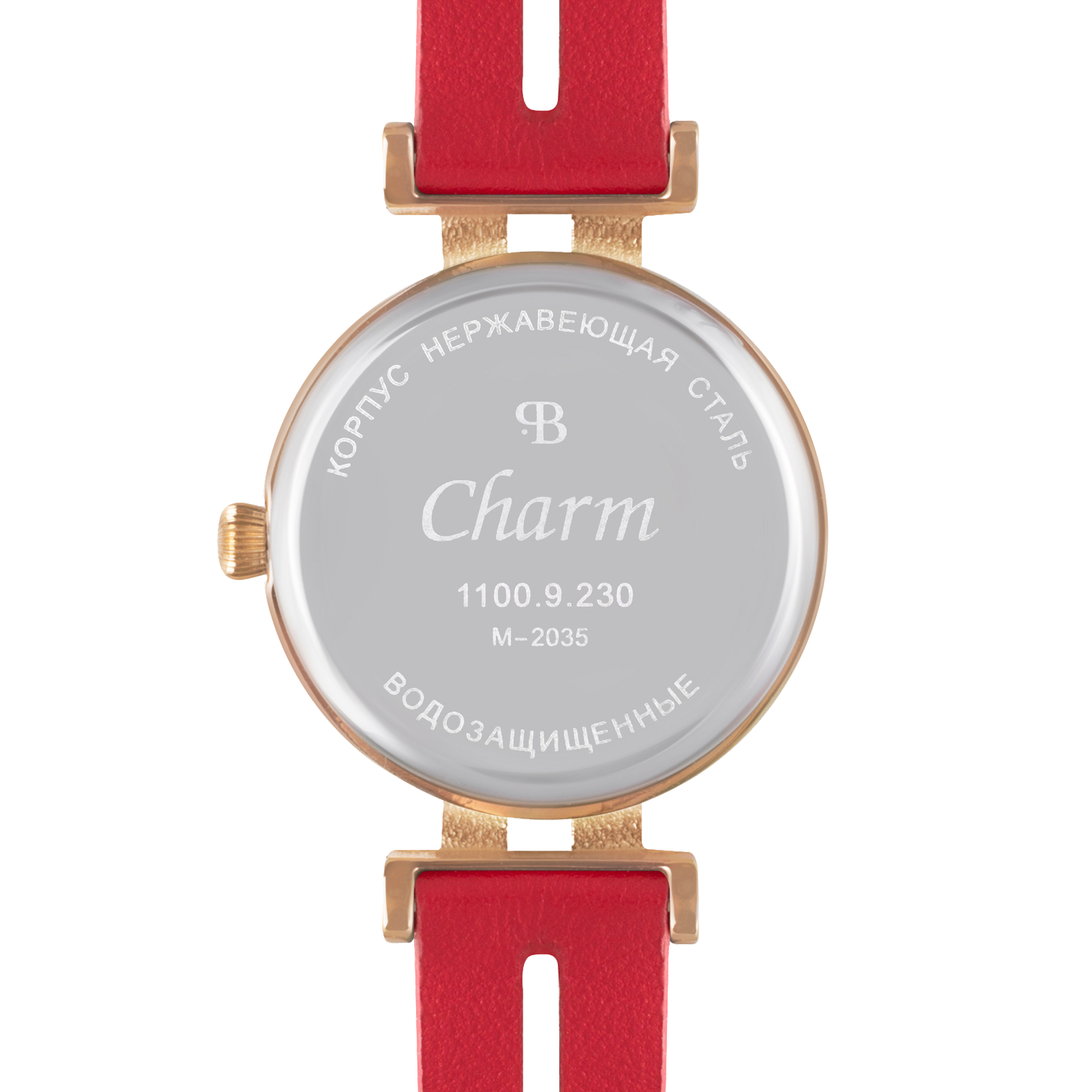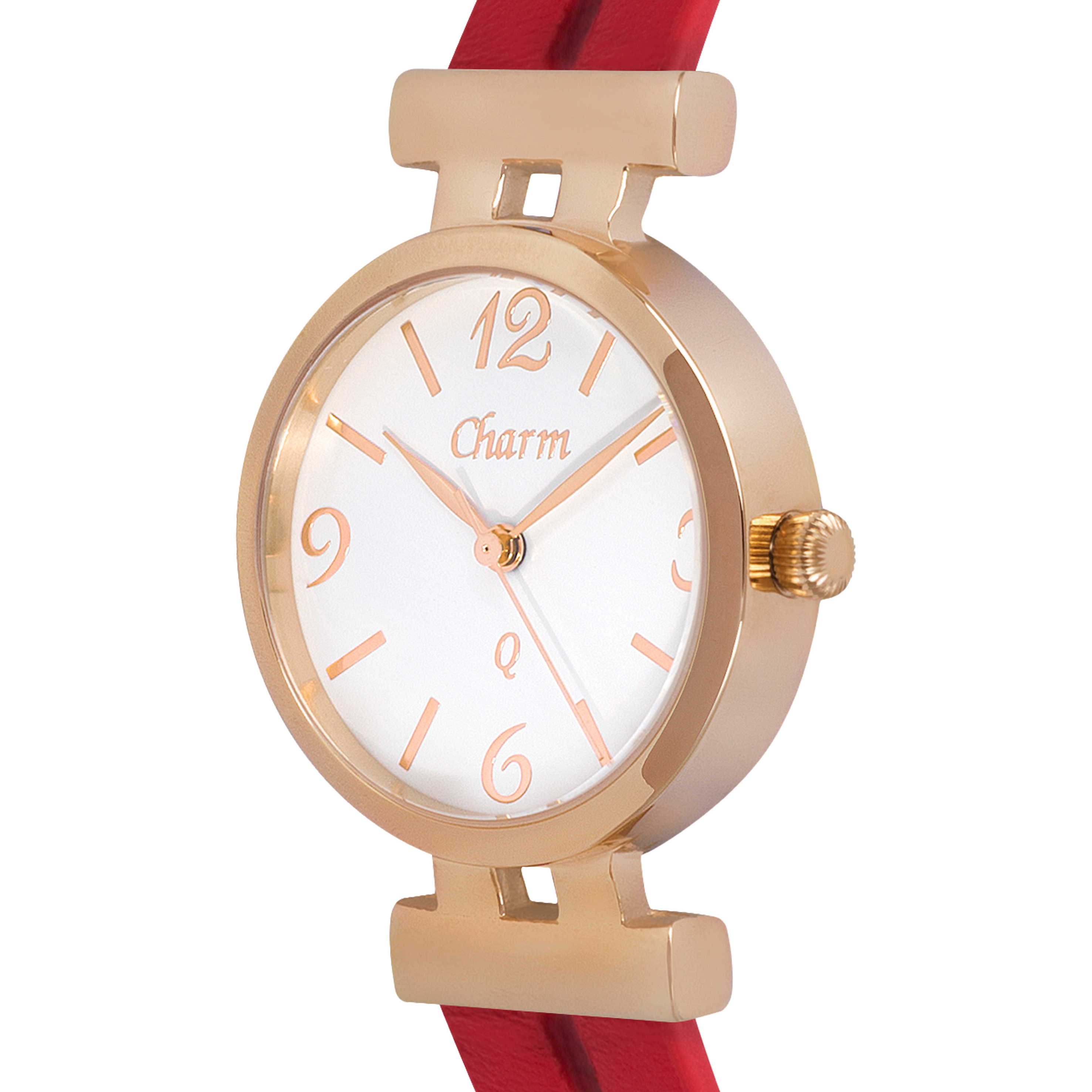 Наручные кварцевые часы Шарм бело-золотистые с красным ремешком