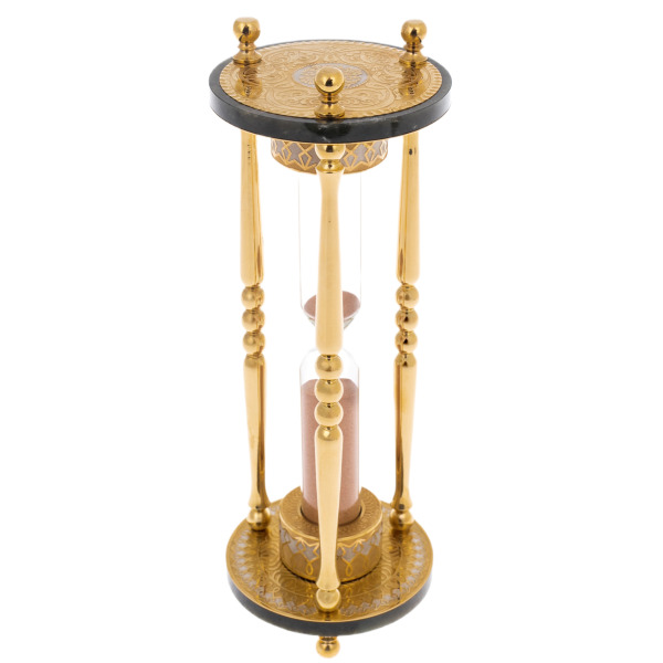 Время, заключенное в песочных часах, обретает форму, совершенство и торжественность. Песочные часы на 15 минут, выполненные в Златоустовской технике — не просто измеритель хода минут, но и философский символ вечного движения и могущества. Величественная конструкция выточена с филигранной точностью, излучая золотой блеск, отражающий амбиции и стремления своих владельцев.