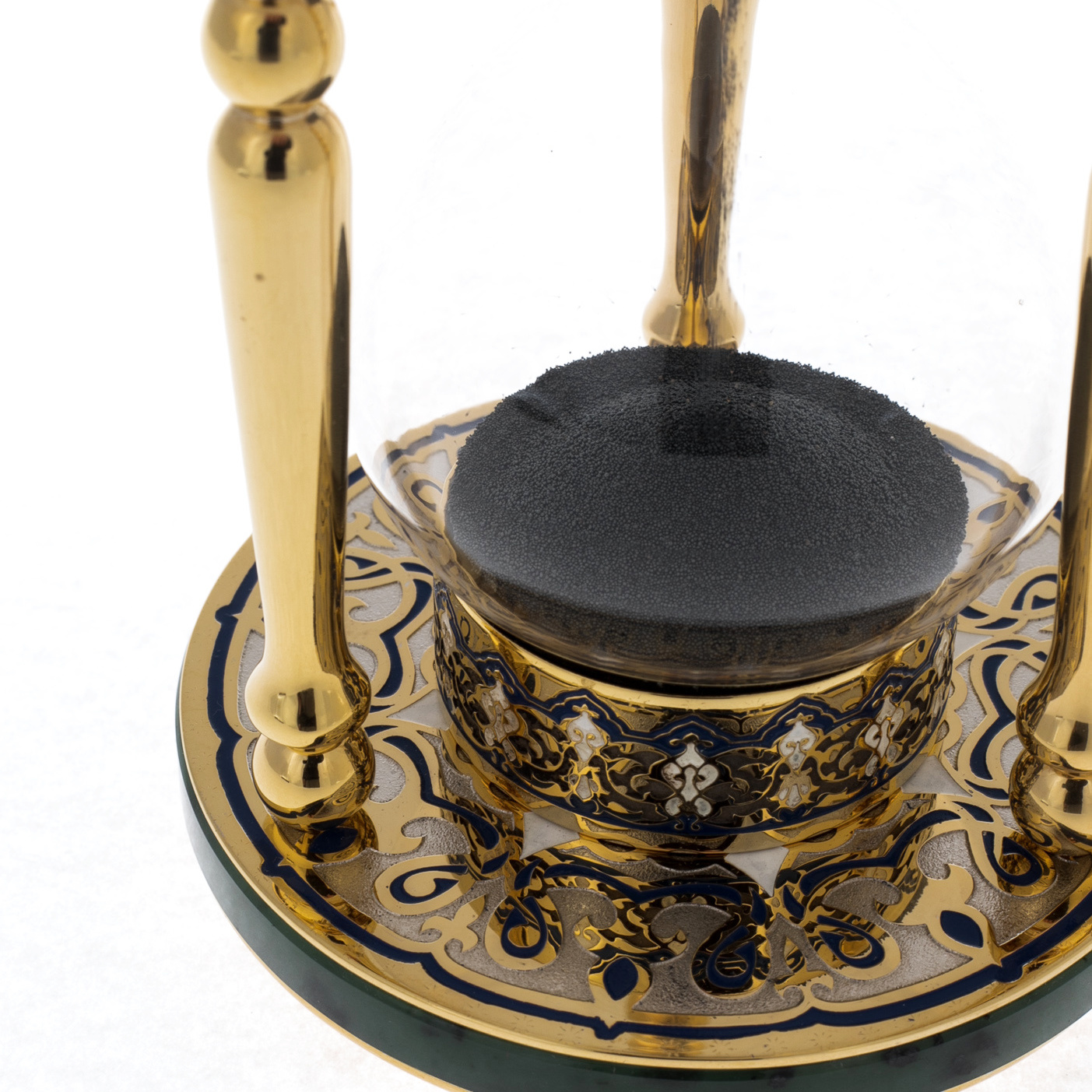 Материалы: позолота, никель, стекло, эмали, нефрит.