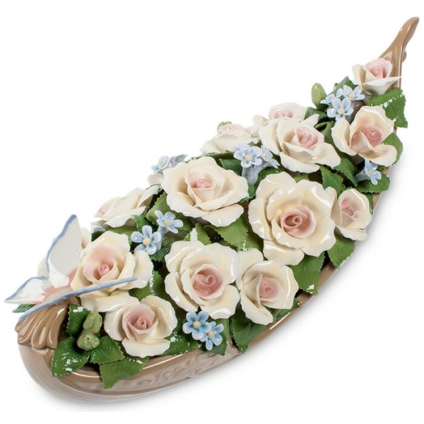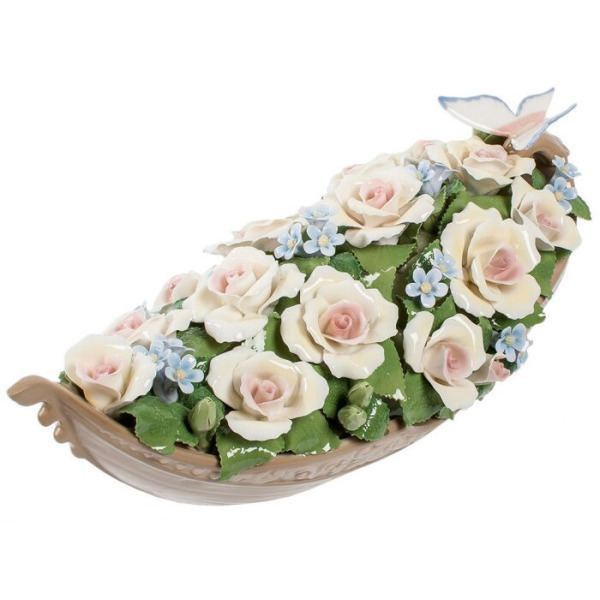 PavoneСтатуэтка из керамики "Лодка с цветами"Статуэтка из керамики "Лодка с цветами"По волнам уверенно плывет старинная ладья, доверху загруженная цветами. Композиция, которую они составляют, тщательно продумана, нежные оттенки разнообразных цветов дополняют друг друга, выделяясь на темной зелени листьев. Не верится, что все эти цветы – не живые, а искусственные, настолько точно, вплоть до малейшей прожилки на лепестках, они выполнены.