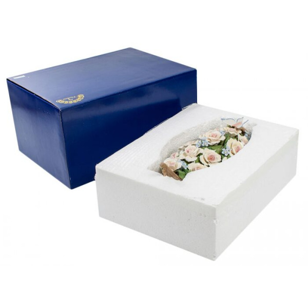Декоративная корзина с красными розамиДекоративная корзина с красными розамиВ каждой композиции имеется множество мелких деталей, выполненных с филигранной точностью. Корзина с цветами из неаполитанского фарфора выглядит очень роскошно и станет незабываемым подарком для человека, который любит изысканные интерьерные аксессуары, к тому же такие цветы никогда не завянут и всегда будут выглядеть свежими. Многие любители керамики считают изделия неаполитанских мастеров шедеврами художественного творчества и целым направлением в искусстве.