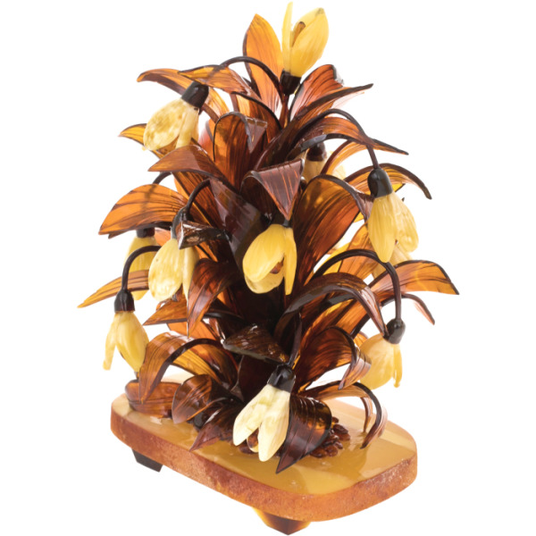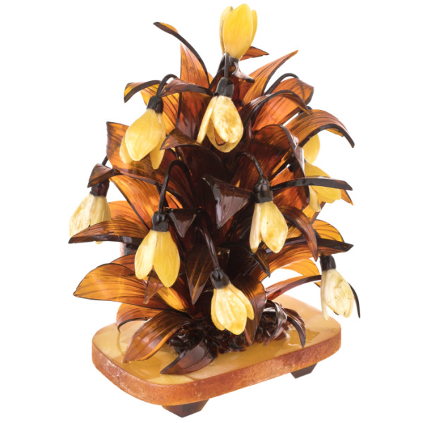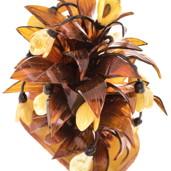 Букет из янтаря "Лилии"Букет из янтаря "Лилии"Янтарь – волшебный камень, сочетающий в себе целебные и магические свойства, роскошь и тепло. Большинство знаменитых личностей окружали себя янтарем: янтарная комната Петра 1 и корона египетского фараона Тутанхамона - это лишь начало списка. Посуда из янтаря является неизменным атрибутом сервировки стола на аристократических обедах и приемах. Изящные изделия вписываются в любой интерьер. Сочетание янтаря с серебром или бронзой выгодно подчеркивает красоту камня и благородный блеск драгоценных металлов.