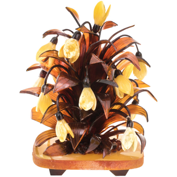 Изысканная цветочная композиция из янтарных ландышей. Натуральный янтарь подчеркивает красоту и нежность весеннего ландыша – символа чистоты, любви и грусти. Такой сувенир достойно украсит интерьер квартиры, загородного дома, превосходно впишется в пространство офиса или кабинета, Он станет желанным подарком близкому человеку или партнеру. Особо оценят эту икебану женщины – истинные ценительницы всего прекрасного.