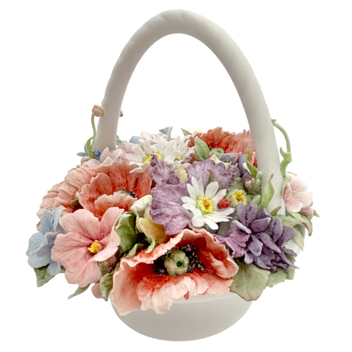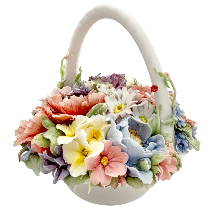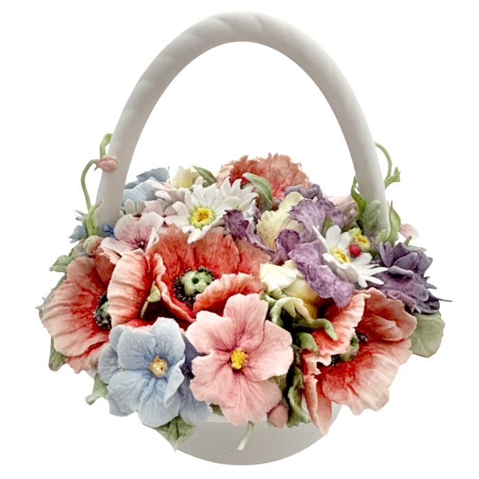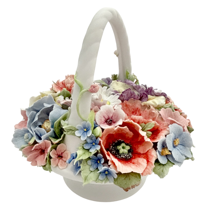 Сувенир из фарфора "Цветочная корзинка полевых цветов" с ручкой