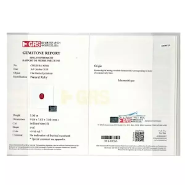 Красный бирманский рубин 3,01 каратаКрасный бирманский рубин 3,01 каратаРубин — драгоценный камень от розового до кроваво-красного цвета, разновидность минерала корунда (оксида алюминия). Другие разновидности корунда ювелирного качества называются сапфирами. Рубин считается одним из четырёх драгоценных камней наряду с сапфиром, изумрудом и бриллиантом.