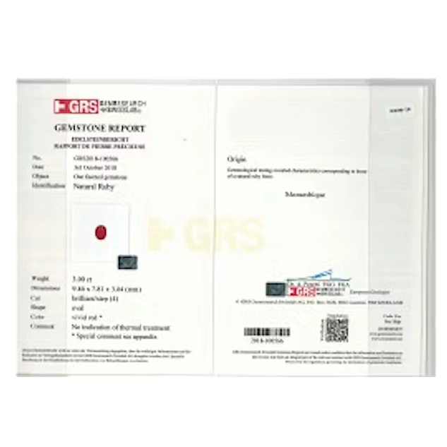 Красный бирманский рубин 3,07 каратаКрасный бирманский рубин 3,07 каратаРубин — драгоценный камень от розового до кроваво-красного цвета, разновидность минерала корунда (оксида алюминия). Другие разновидности корунда ювелирного качества называются сапфирами. Рубин считается одним из четырёх драгоценных камней наряду с сапфиром, изумрудом и бриллиантом.