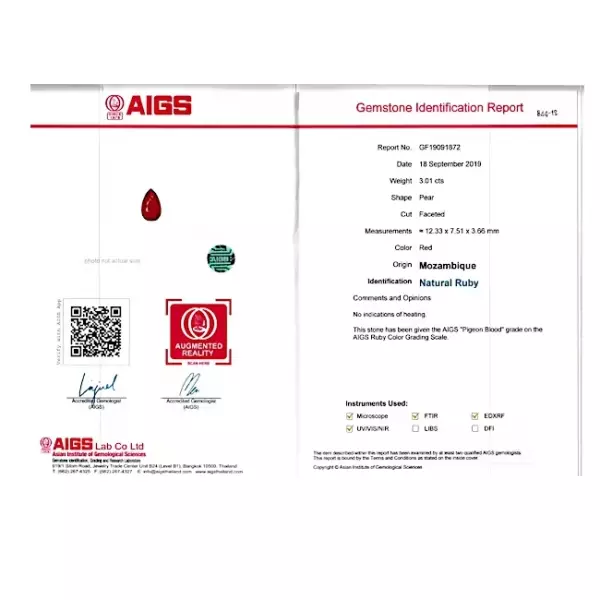 Красный бирманский рубин 3,01 каратаКрасный бирманский рубин 3,01 каратаРубин — драгоценный камень от розового до кроваво-красного цвета, разновидность минерала корунда (оксида алюминия). Другие разновидности корунда ювелирного качества называются сапфирами. Рубин считается одним из четырёх драгоценных камней наряду с сапфиром, изумрудом и бриллиантом.