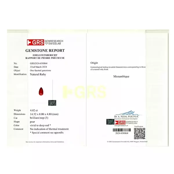 Красный бирманский рубин 3,01 каратаКрасный бирманский рубин 3,01 каратаРубин — драгоценный камень от розового до кроваво-красного цвета, разновидность минерала корунда (оксида алюминия). Другие разновидности корунда ювелирного качества называются сапфирами. Рубин считается одним из четырёх драгоценных камней наряду с сапфиром, изумрудом и бриллиантом.