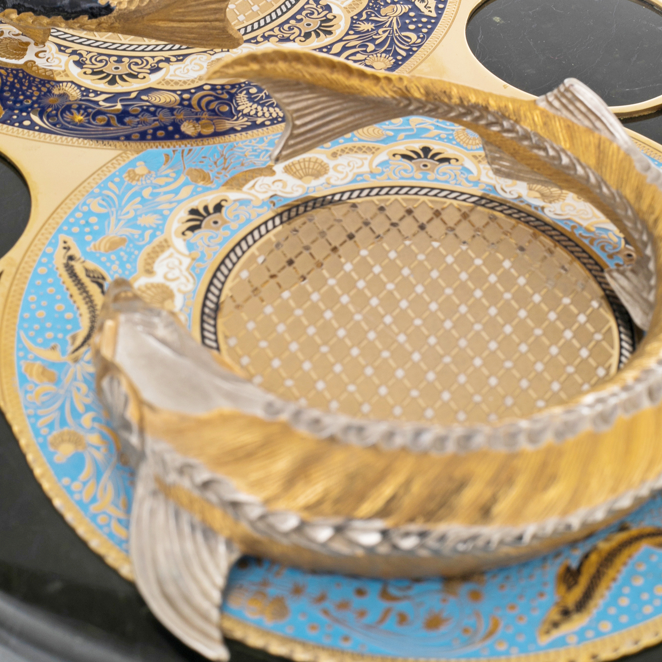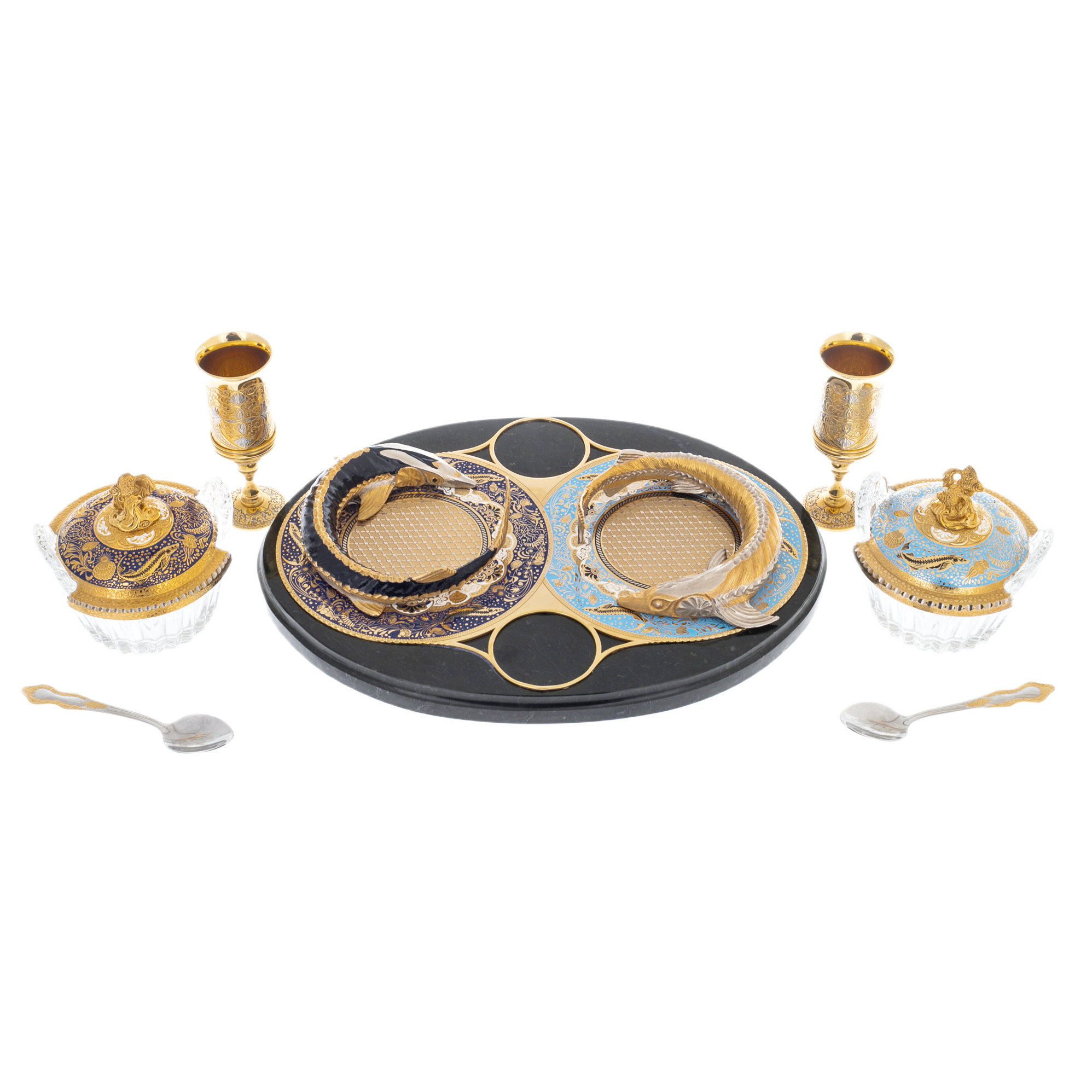 Икорница двойная "Осетры. День-ночь" на змеевике, Златоуст