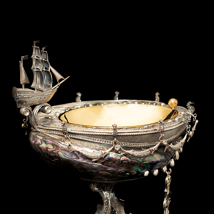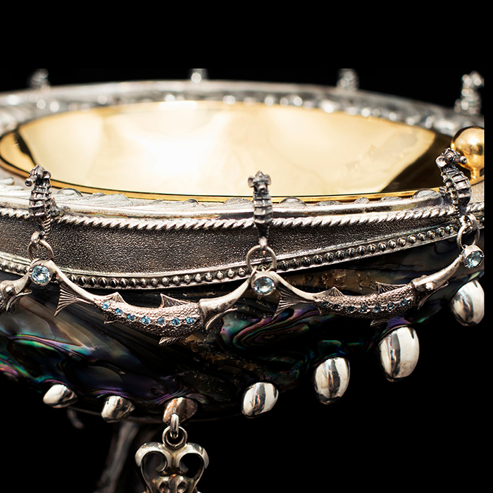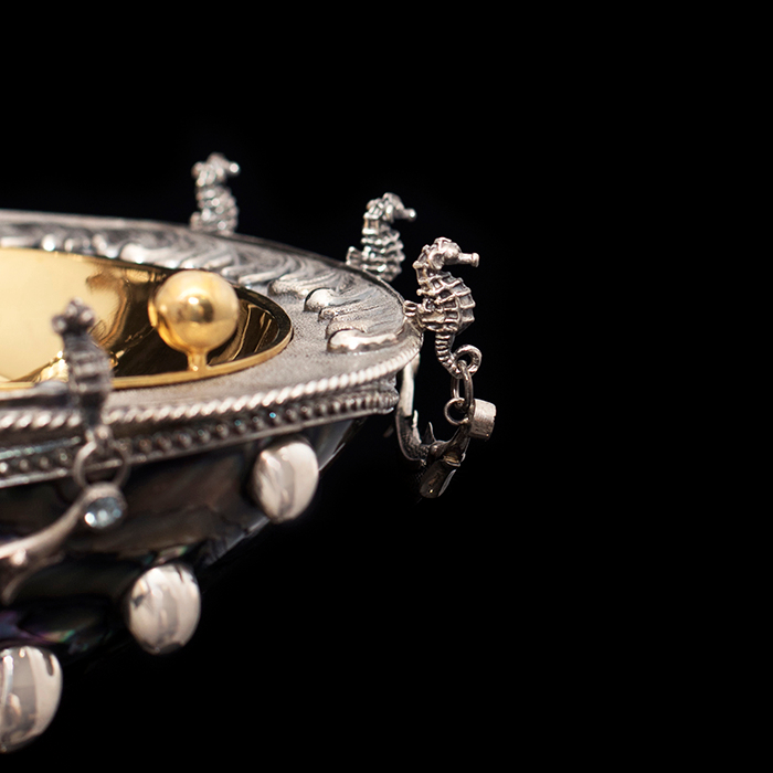 Материал: серебро 925 пр, морская раковина Galiotis, поделочные камни, золочение.