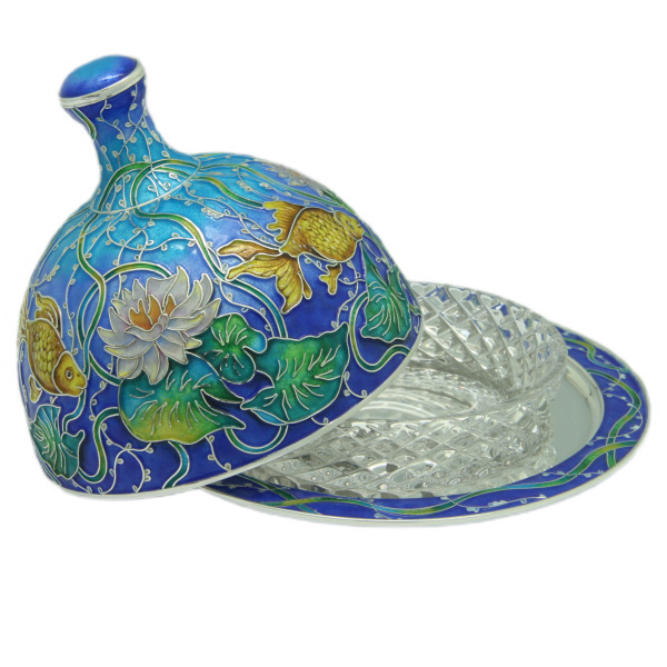 Икорница с ледовницей "Посейдон" яшма,эмаль, ЗлатоустИкорница с ледовницей "Посейдон" яшма,эмаль, ЗлатоустКоллекции изящной посуды от мастеров из Златоуста эффектно декорированы росписью, травлением и золочением. После того, как на полированную поверхность наносится изящный рисунок, изделие сушится в печи и подвергается обработке, после которого рисунок становится рельефным.