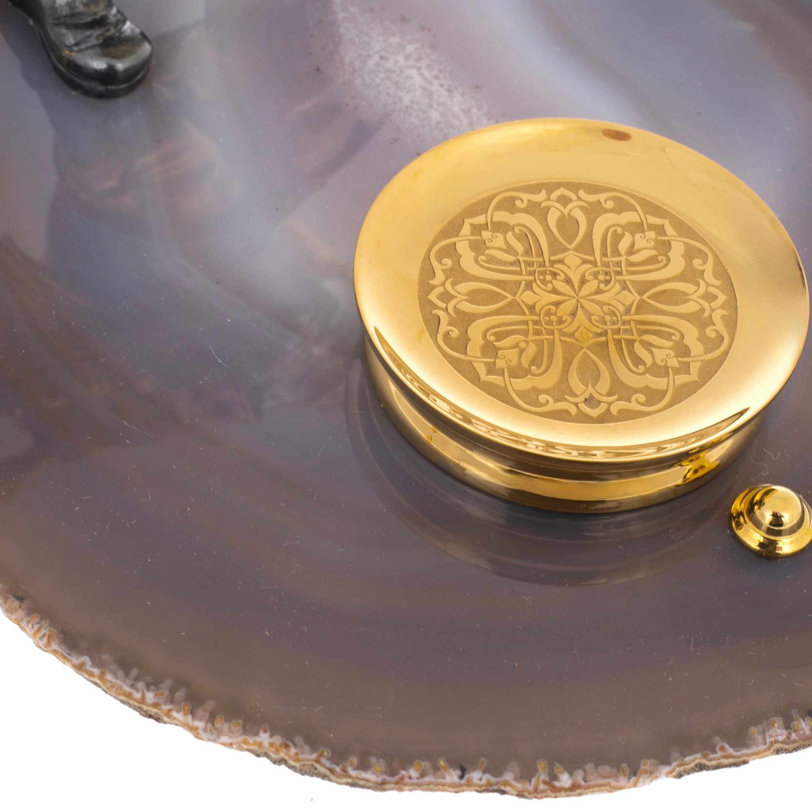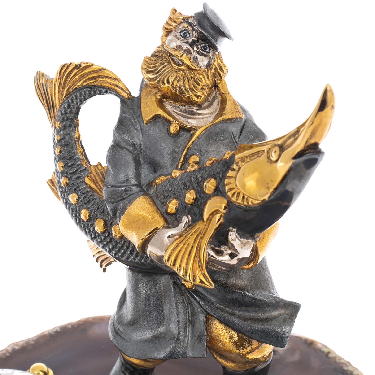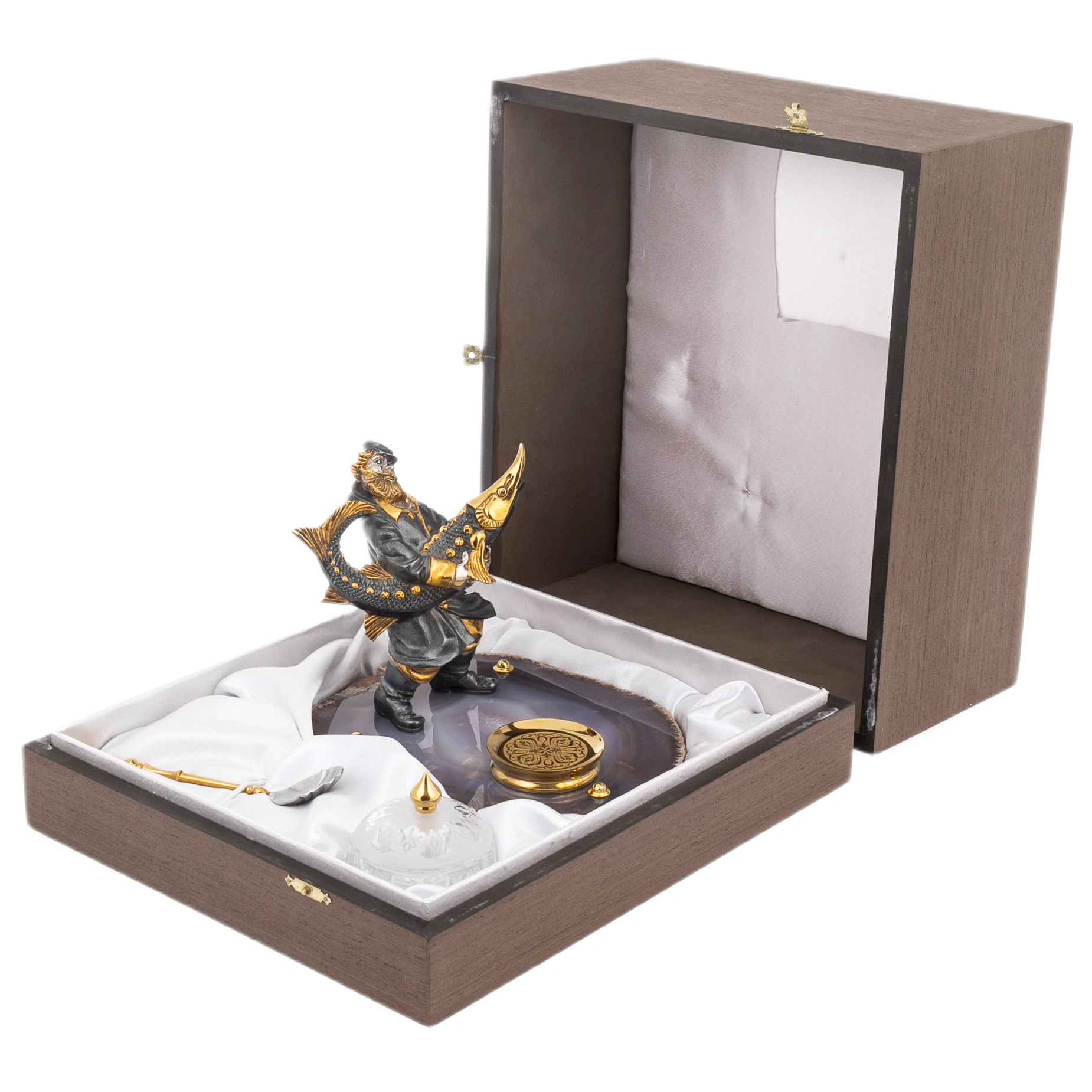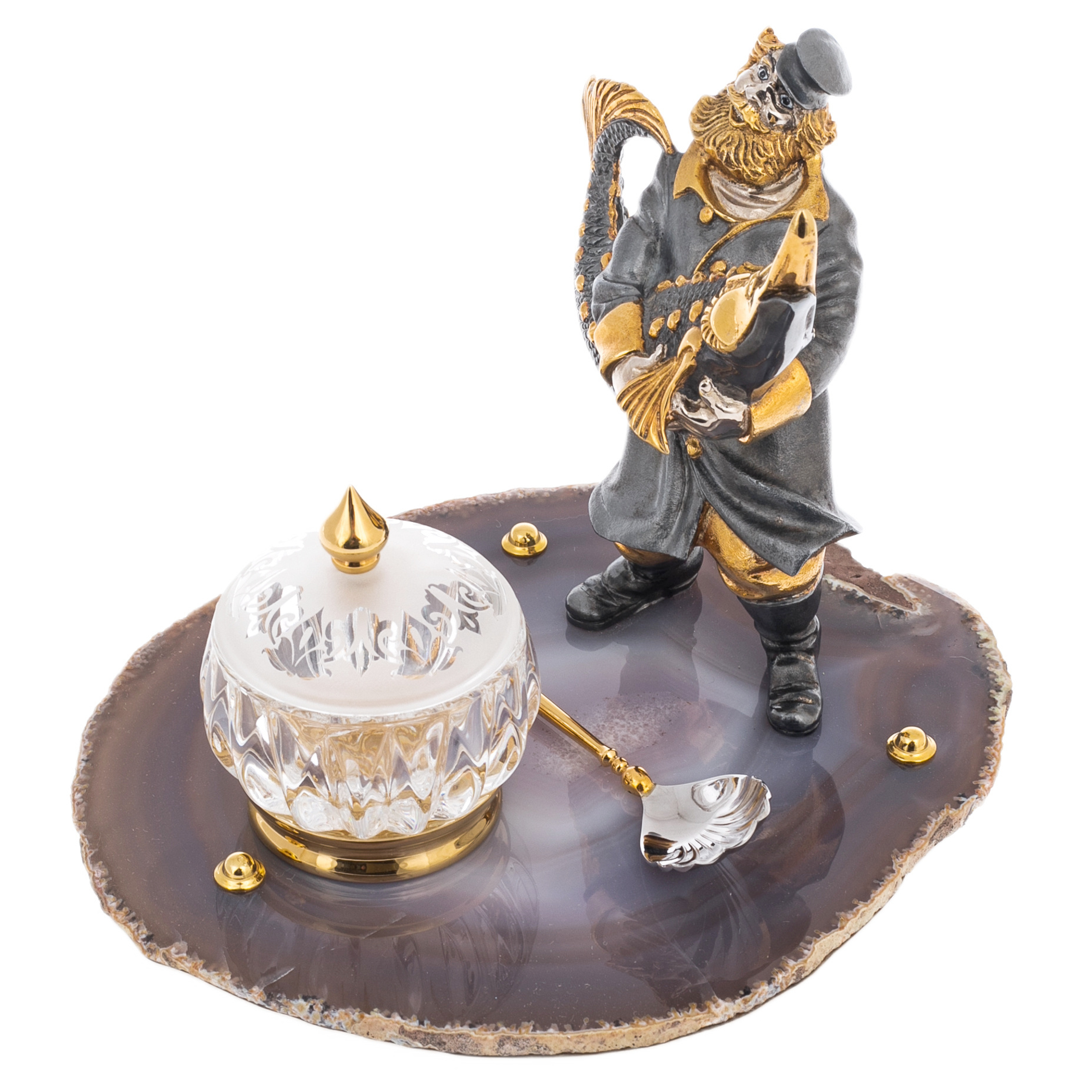 Икорница "Купец с осетром" на подставке из агата, Златоуст