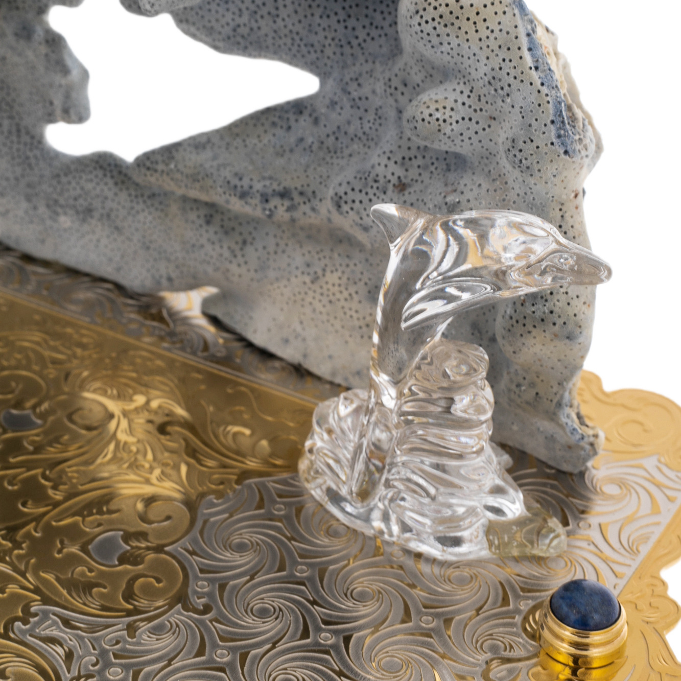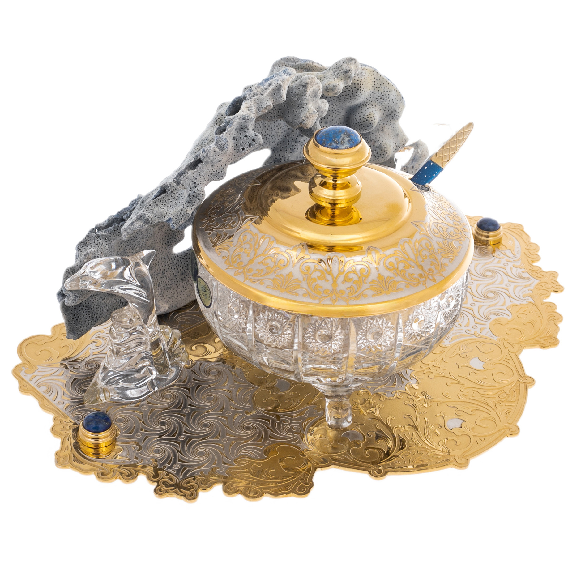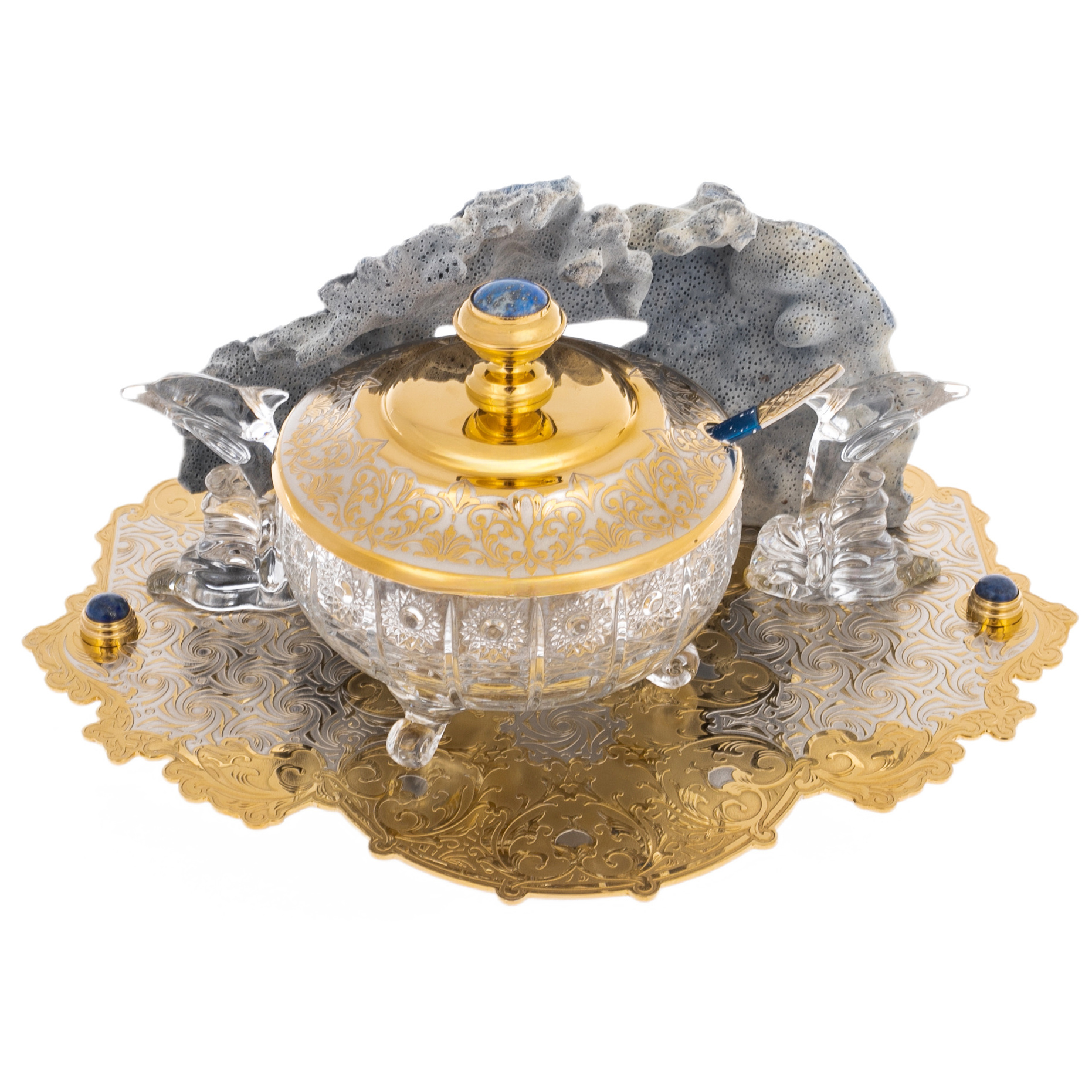 Икорница на подставке "Дельфиний риф" с лазуритом, Златоуст