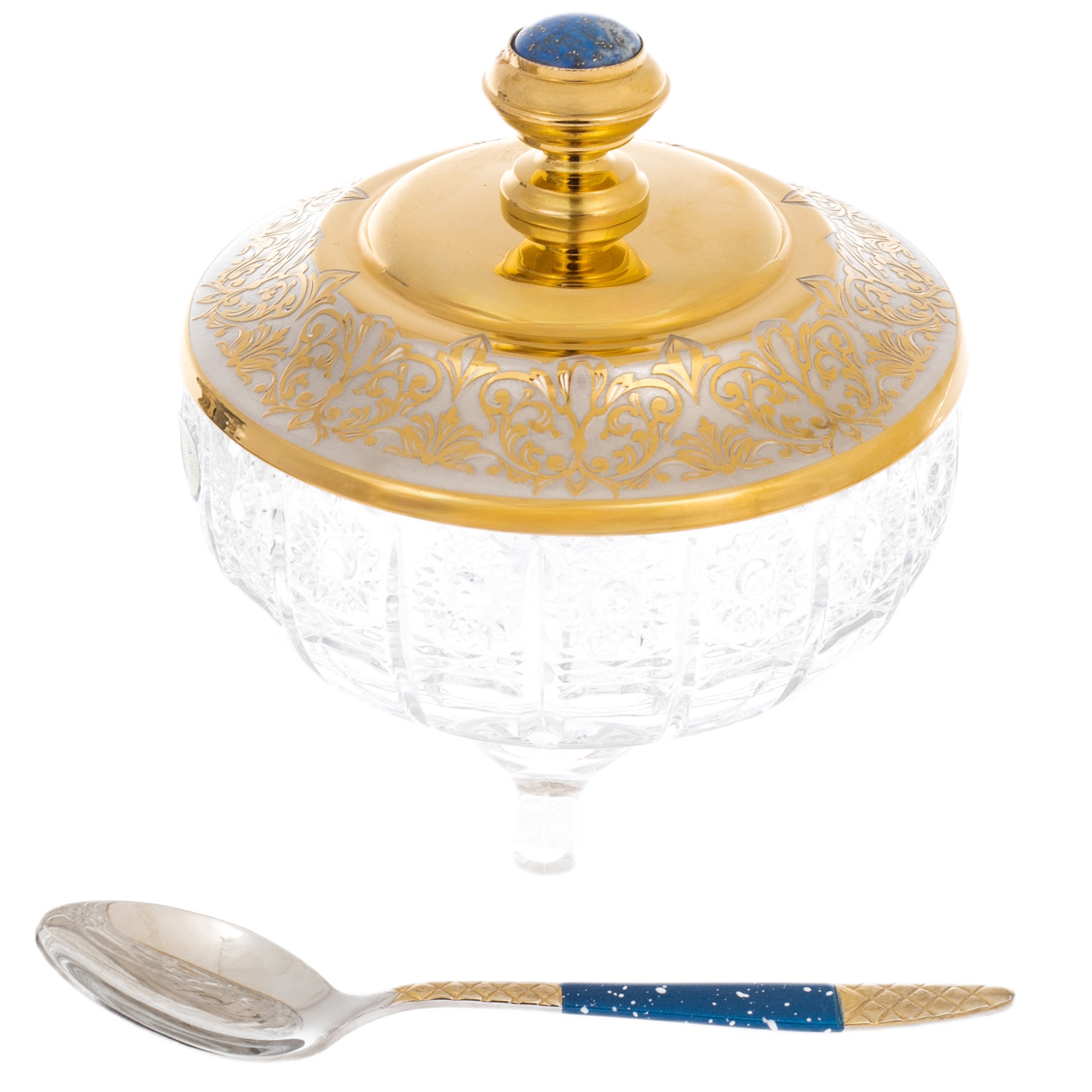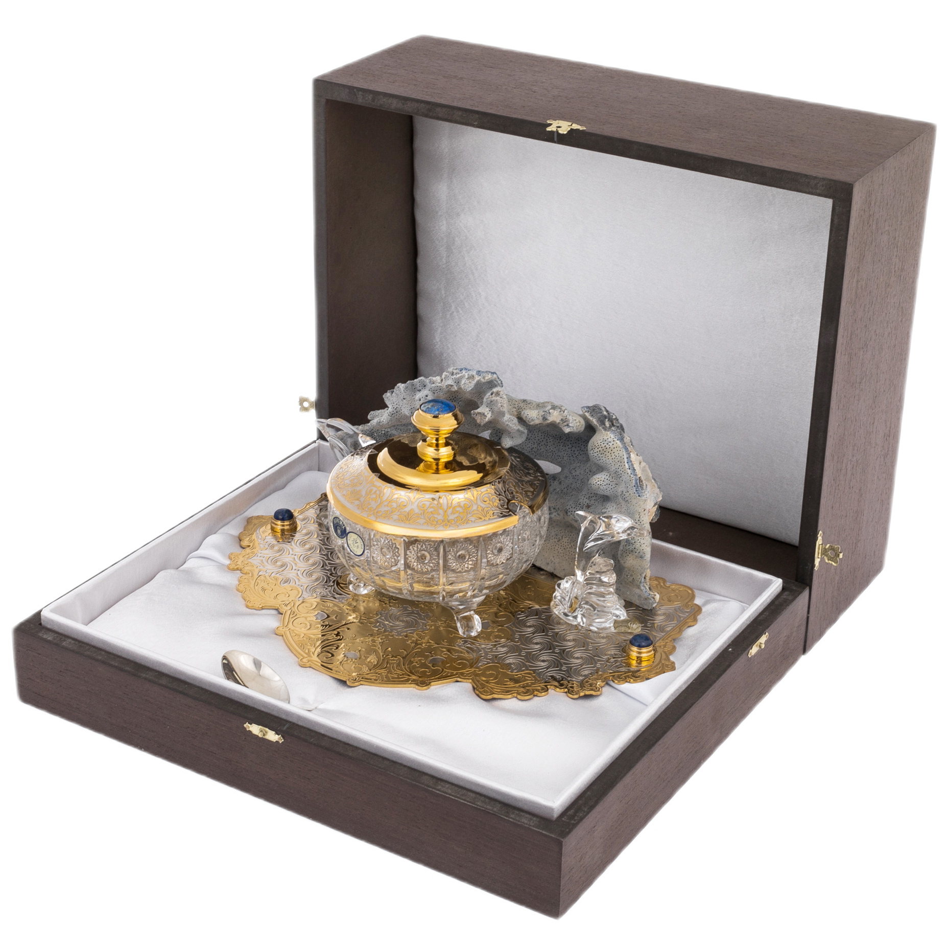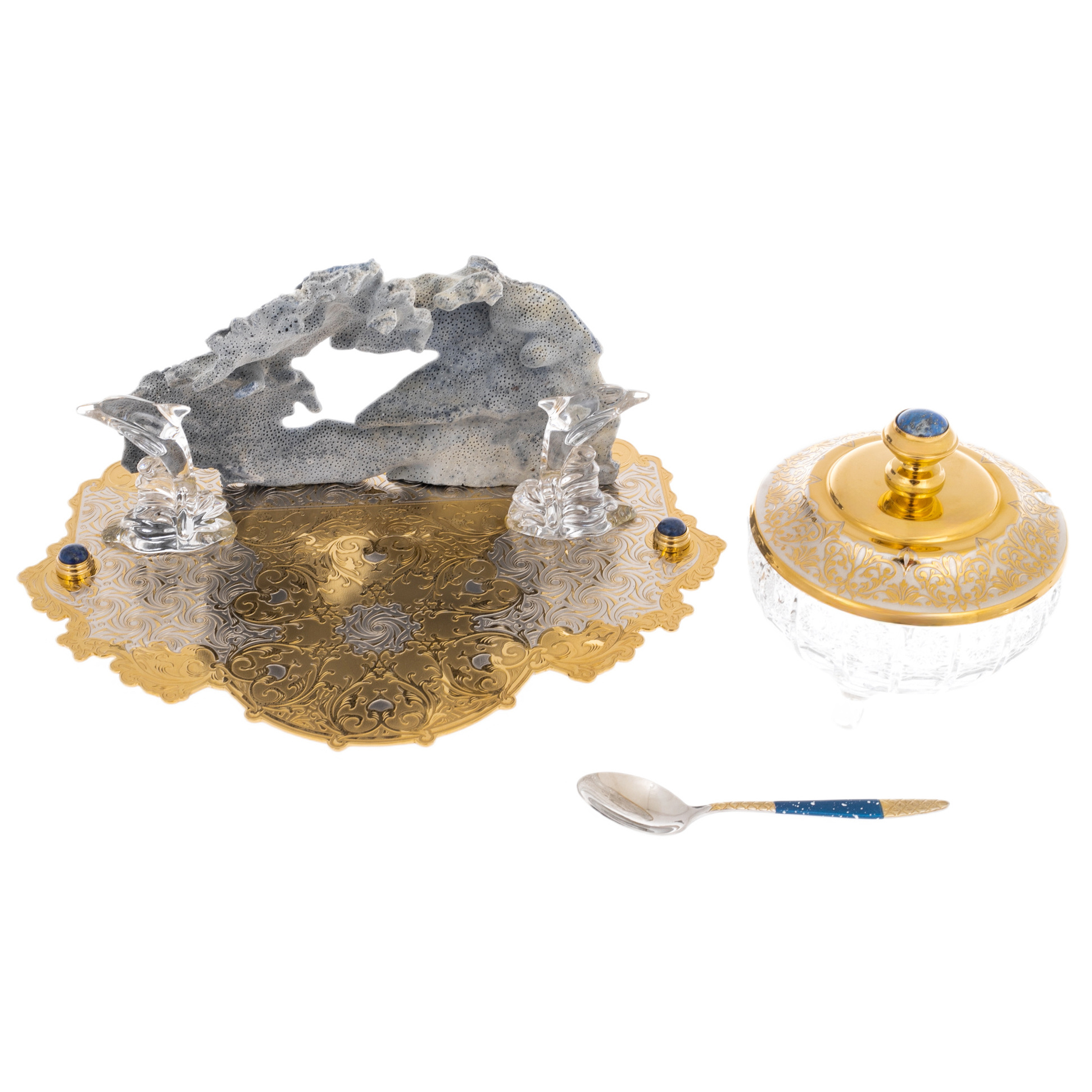 Икорница на подставке "Дельфиний риф" с лазуритом, Златоуст