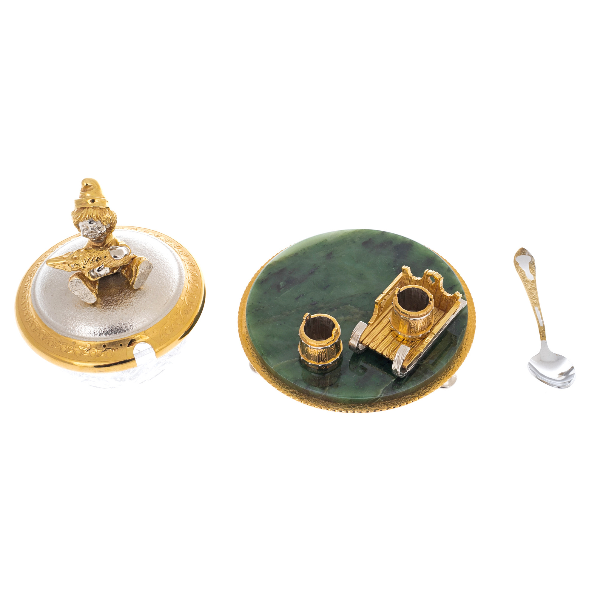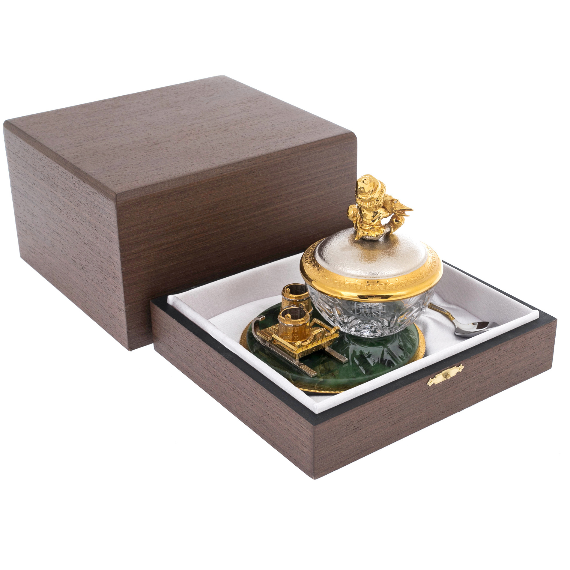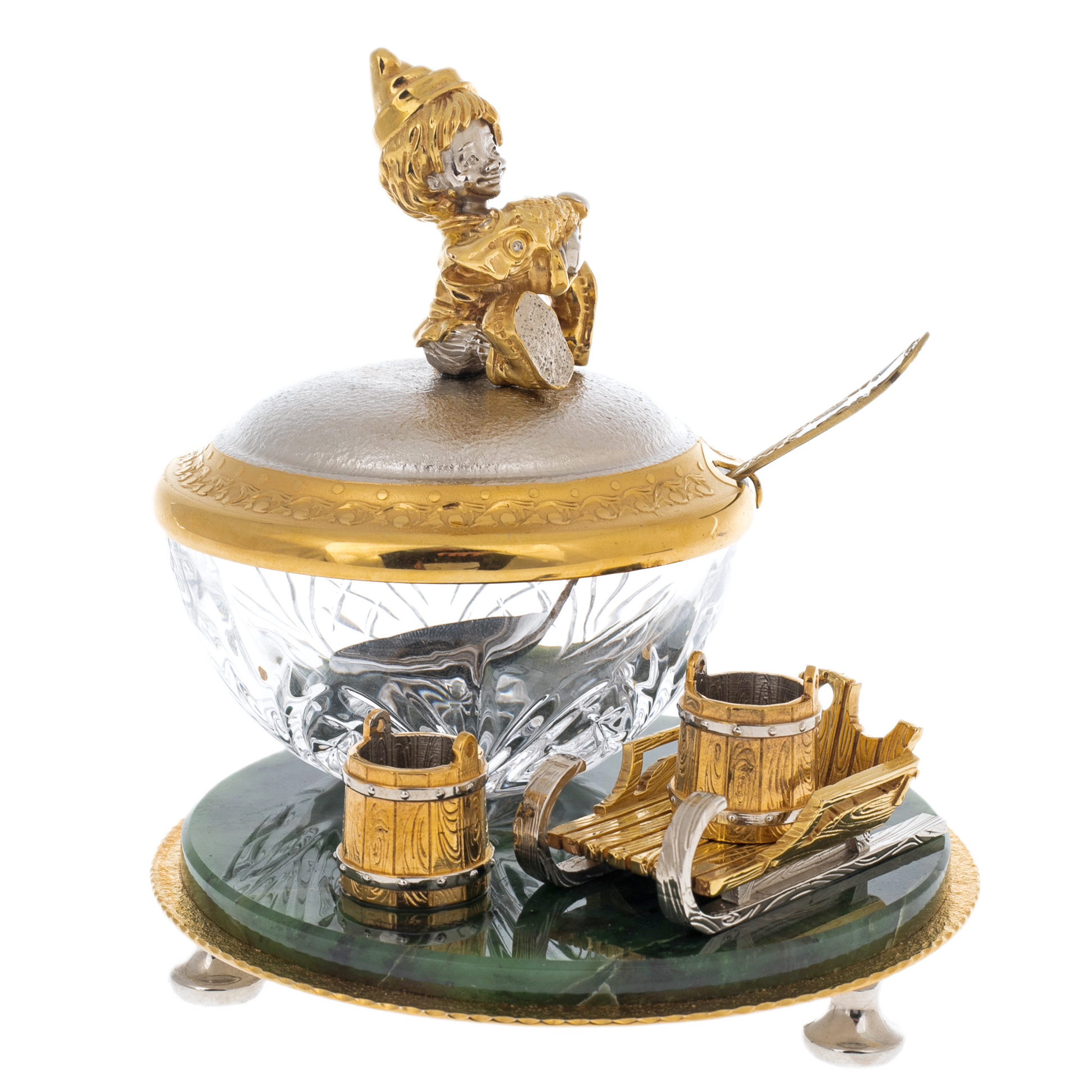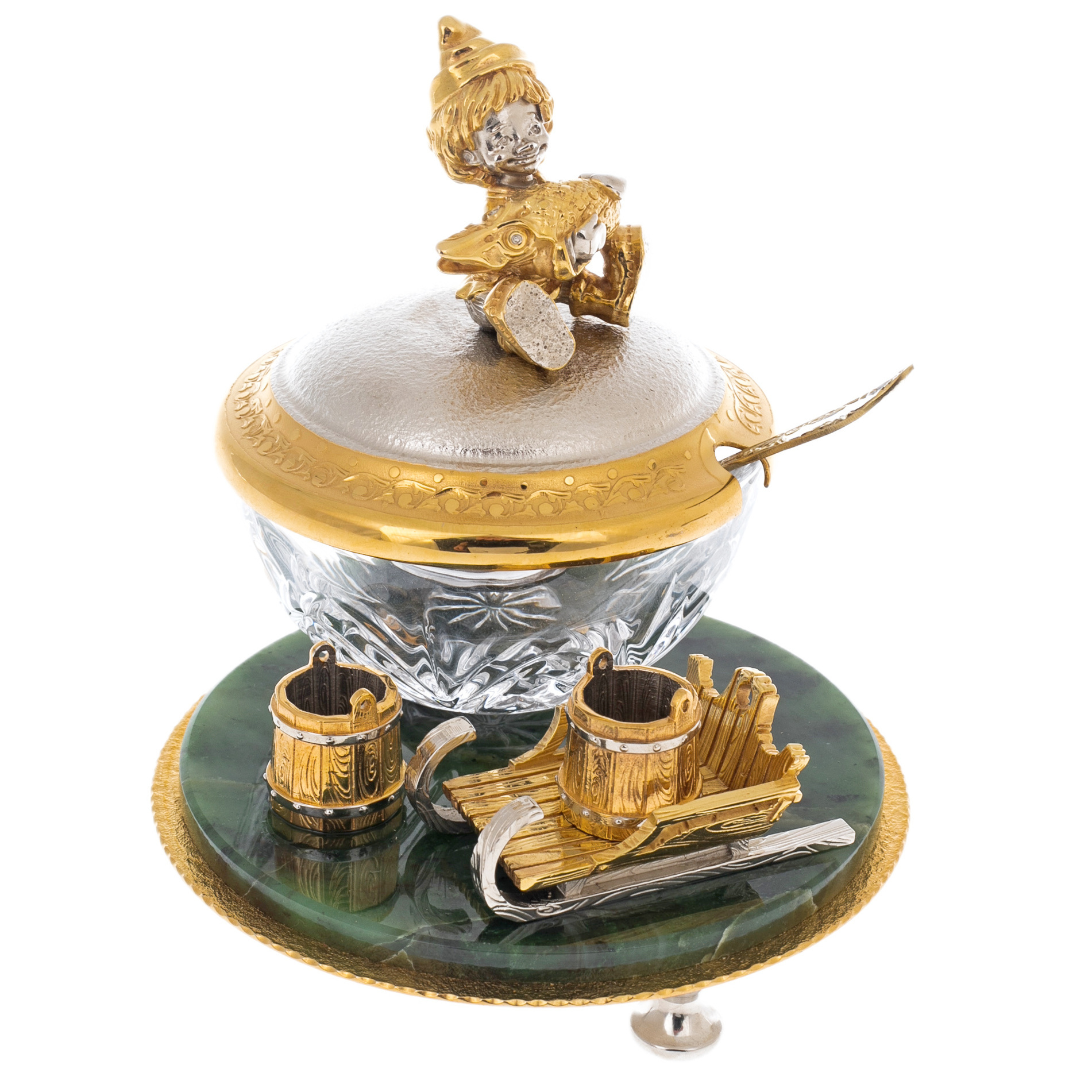Икорница на подставке из нефрита "Емеля" Златоуст