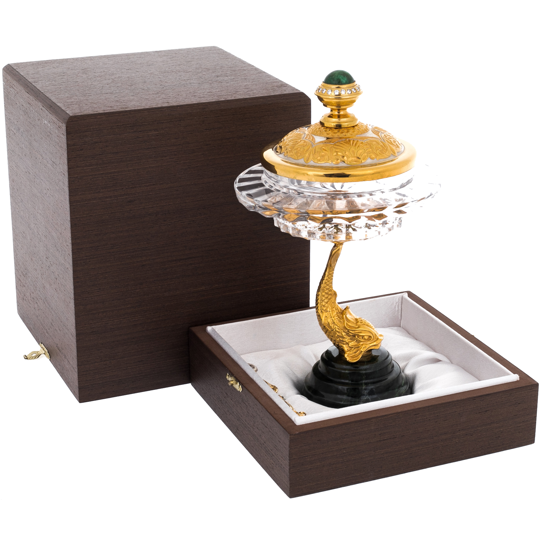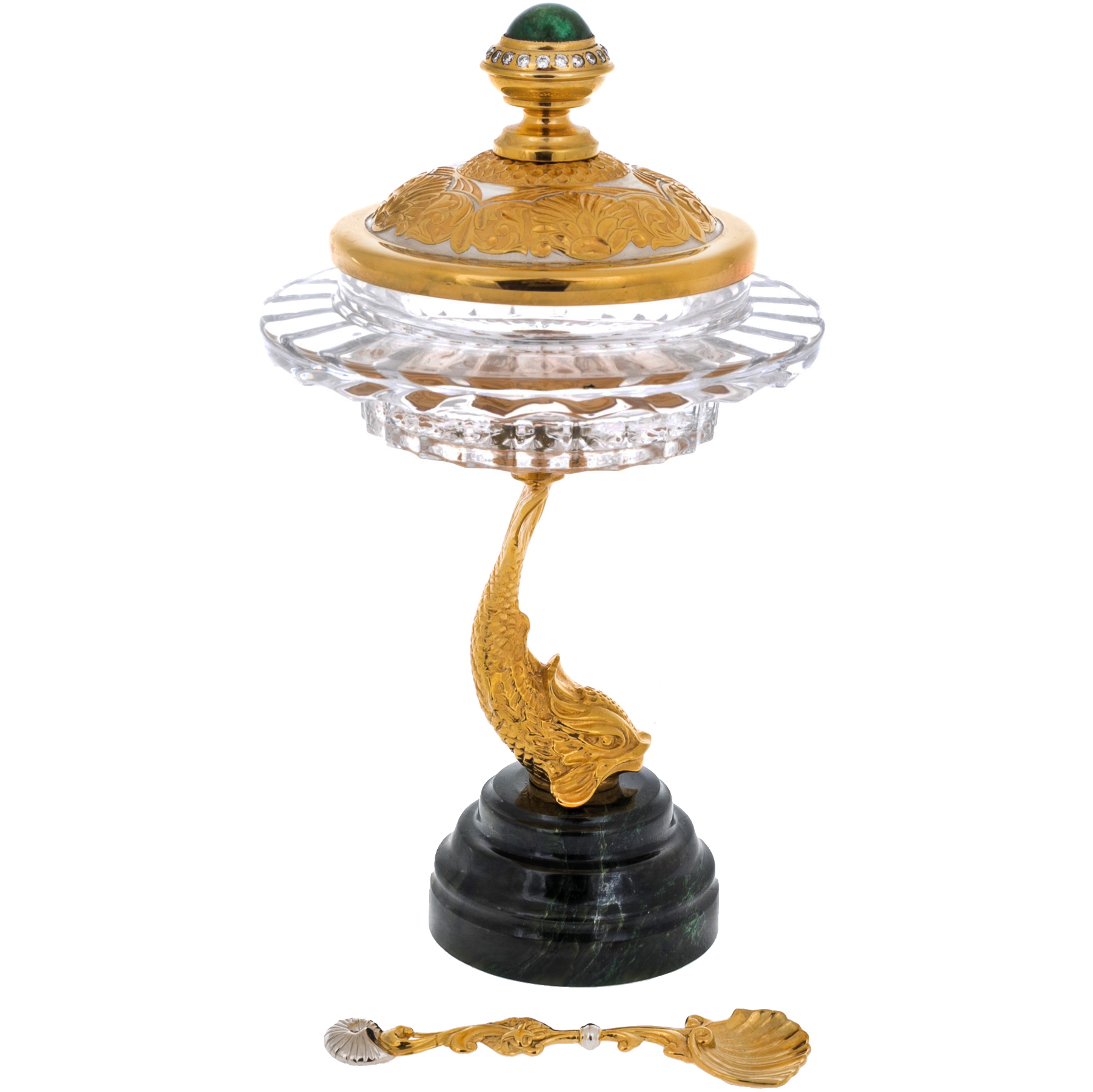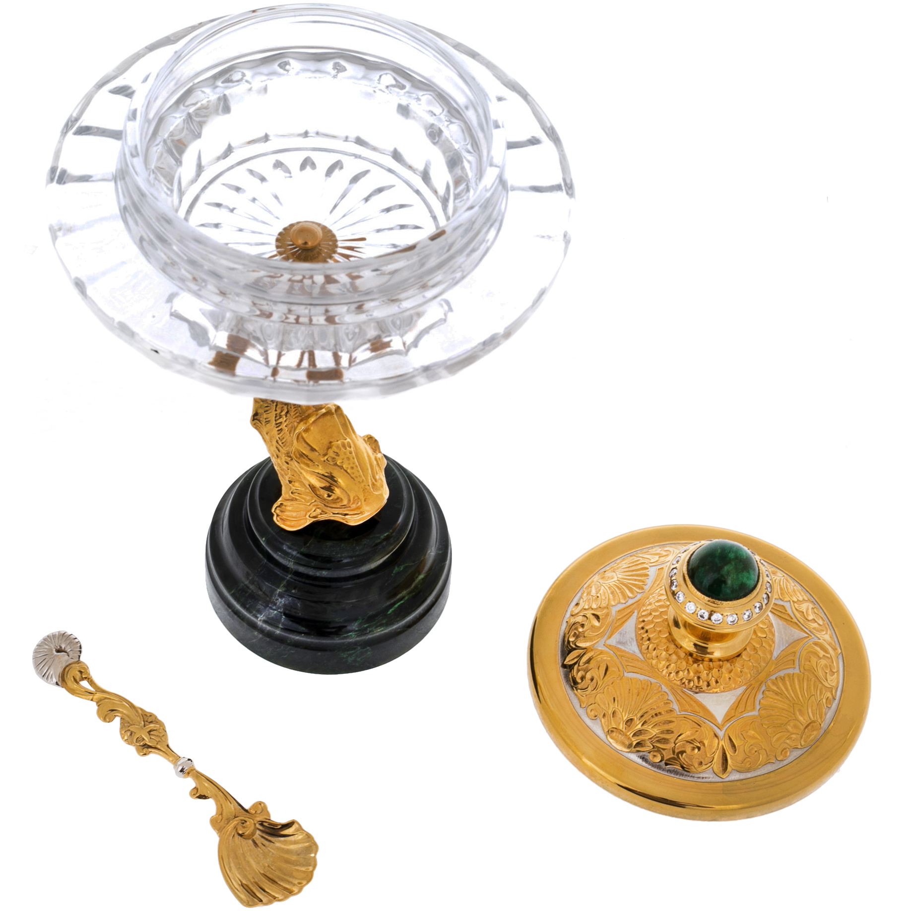 Икорница на подставке из нефрита "Золотая рыбка" Златоуст
