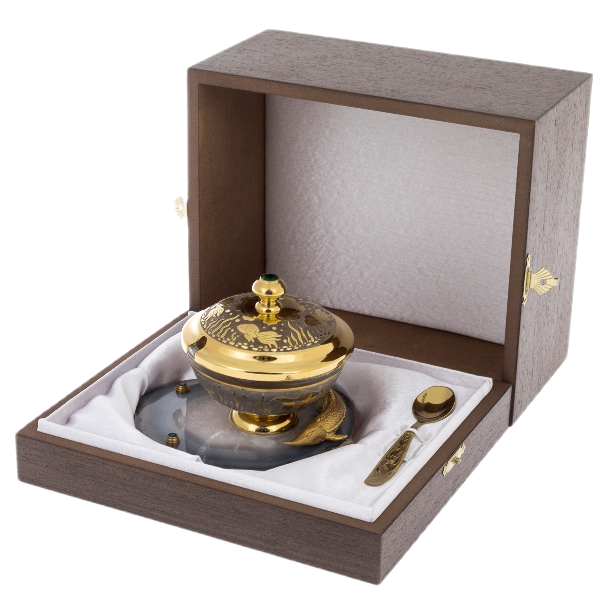 Коллекции изящной посуды от мастеров из Златоуста эффектно декорированы росписью, травлением и золочением. После того, как на полированную поверхность наносится изящный рисунок, изделие сушится в печи и подвергается обработке, после которого рисунок становится рельефным.