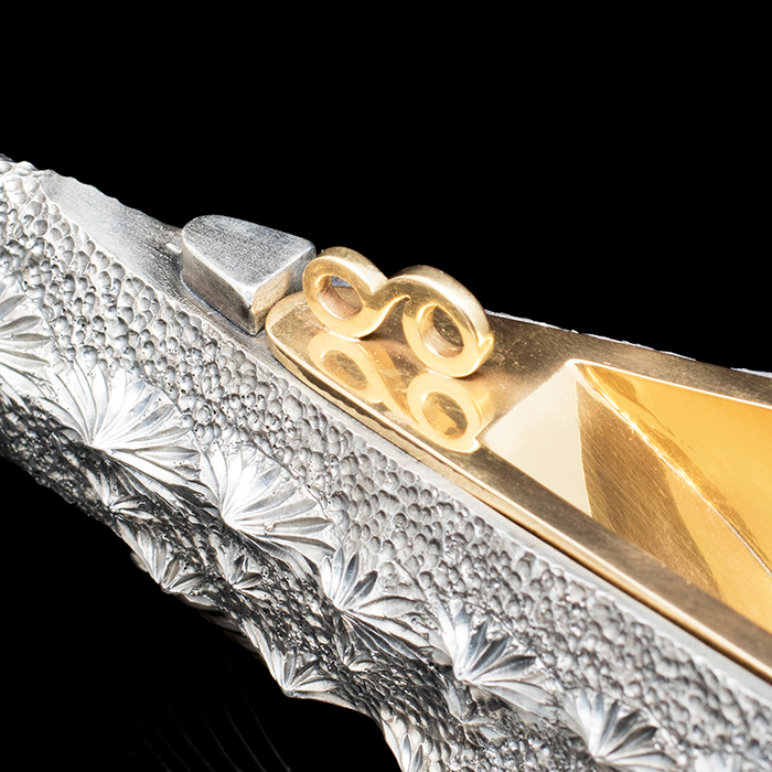 Икорница "ВДНХ" с золочением и серебрением, ЗлатоустИкорница "ВДНХ" с золочением и серебрением, ЗлатоустКоллекции изящной посуды от мастеров из Златоуста эффектно декорированы росписью, травлением и золочением. После того, как на полированную поверхность наносится изящный рисунок, изделие сушится в печи и подвергается обработке, после которого рисунок становится рельефным.
