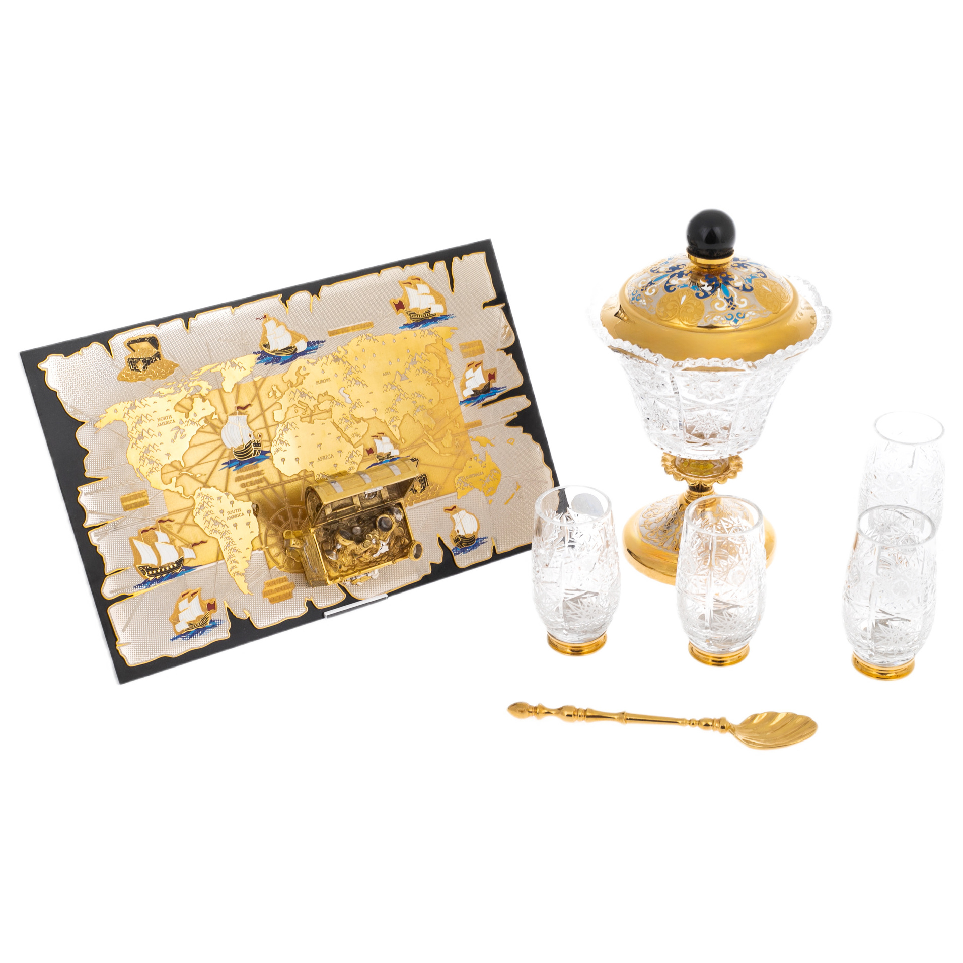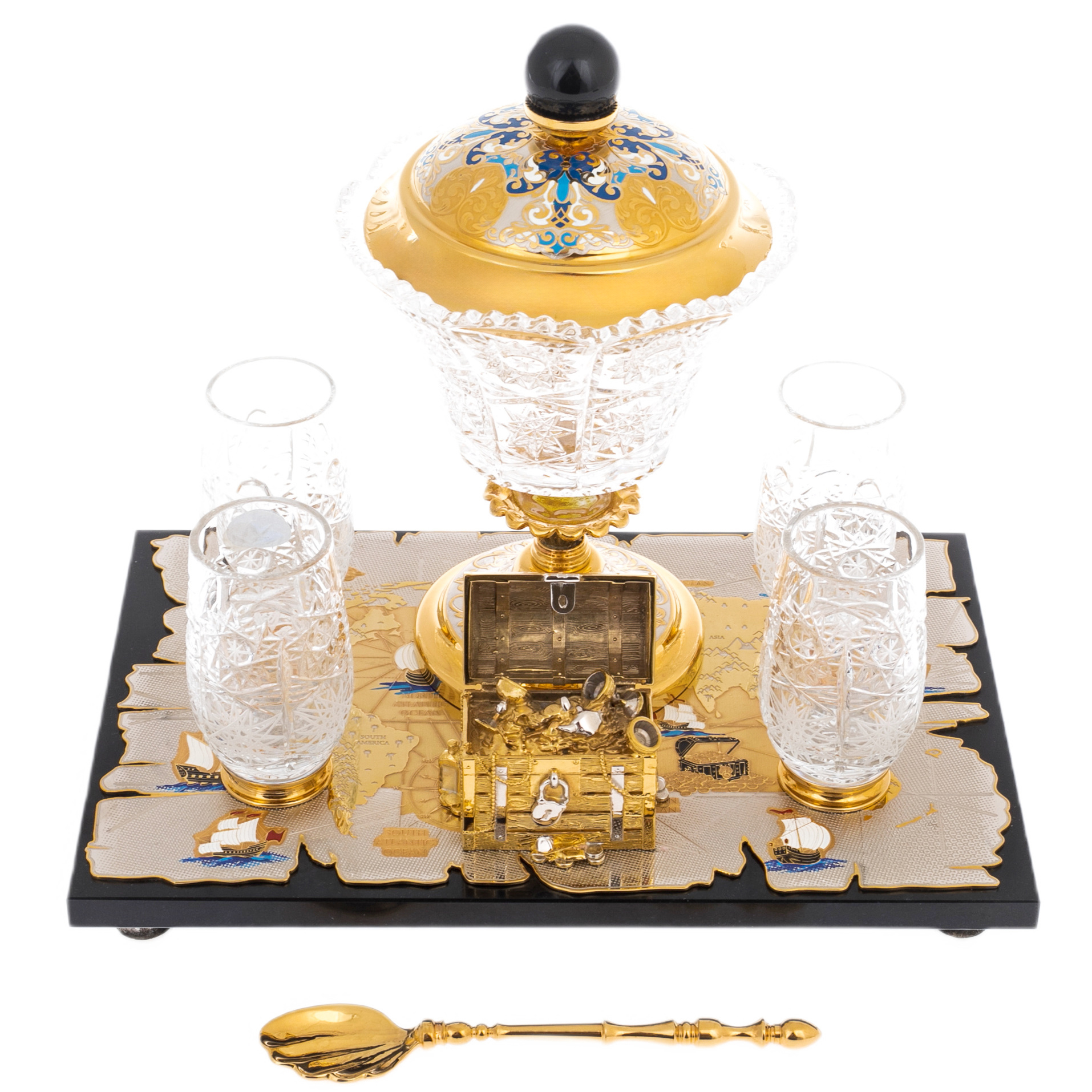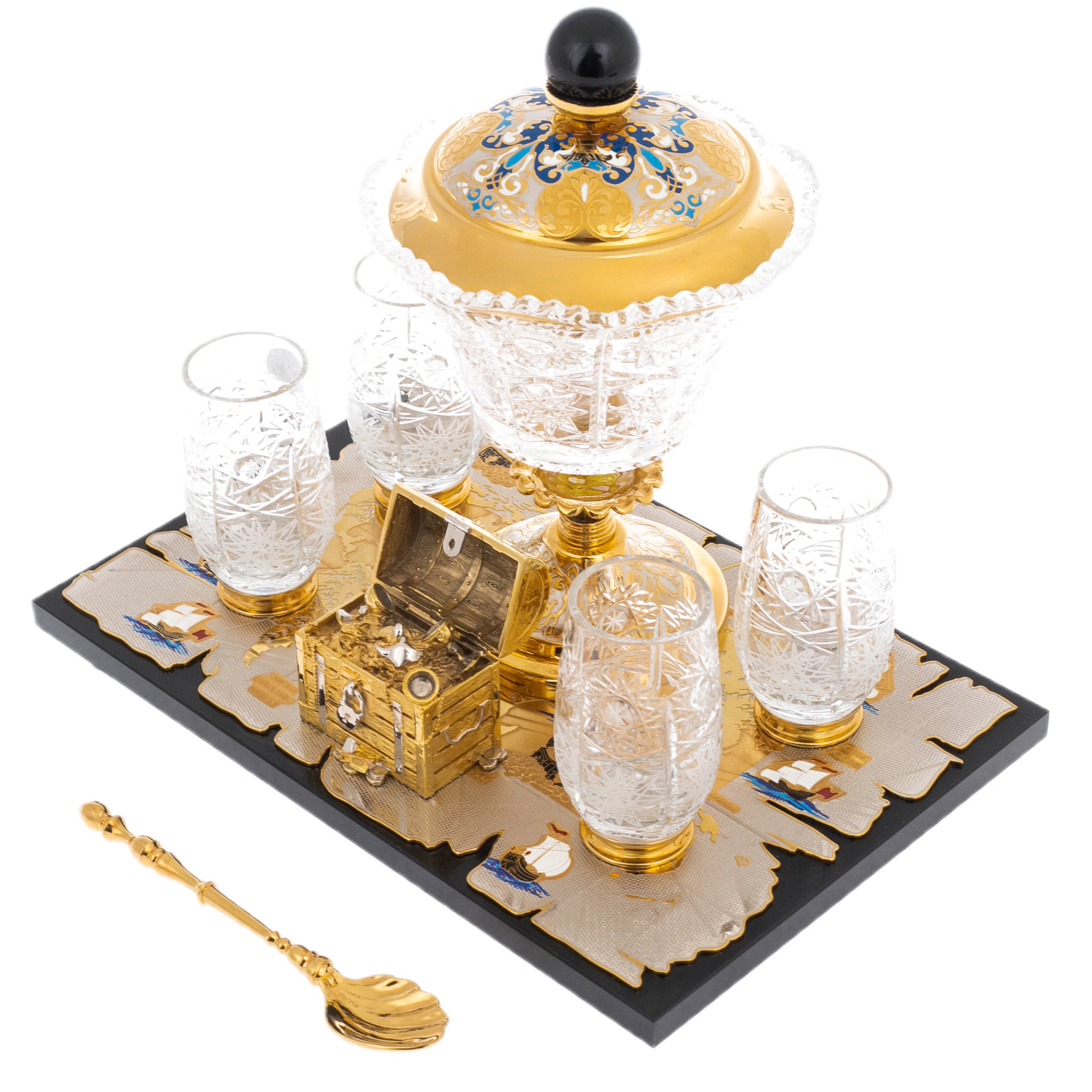 Икорница "Остров сокровищ" на подставке из долерита, на 4 персоны, 7 предметов, Златоуст