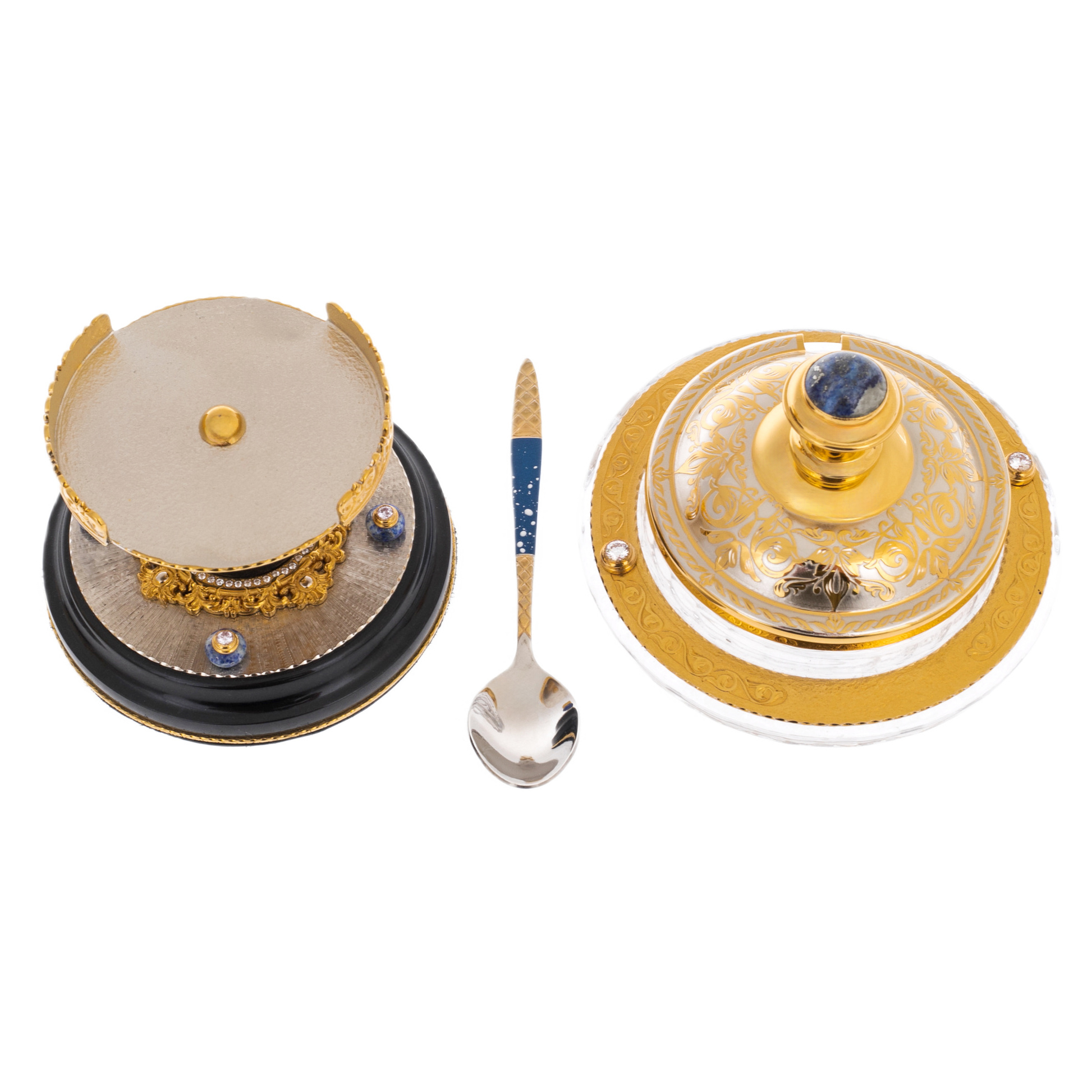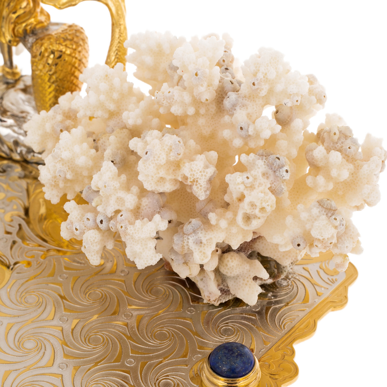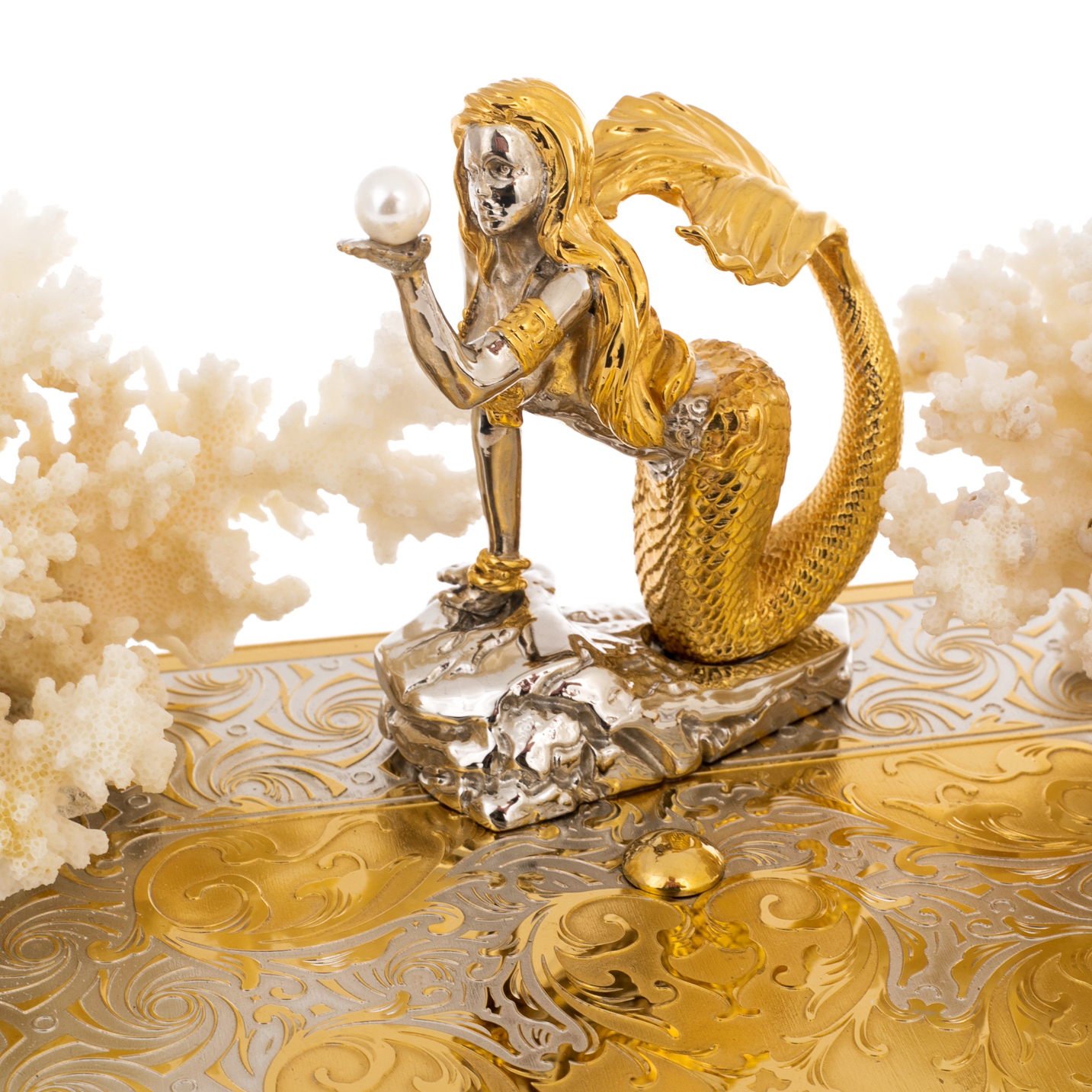 Икорница "Русалка" на подставке из долерита, с кораллом и лазуритом, Златоуст