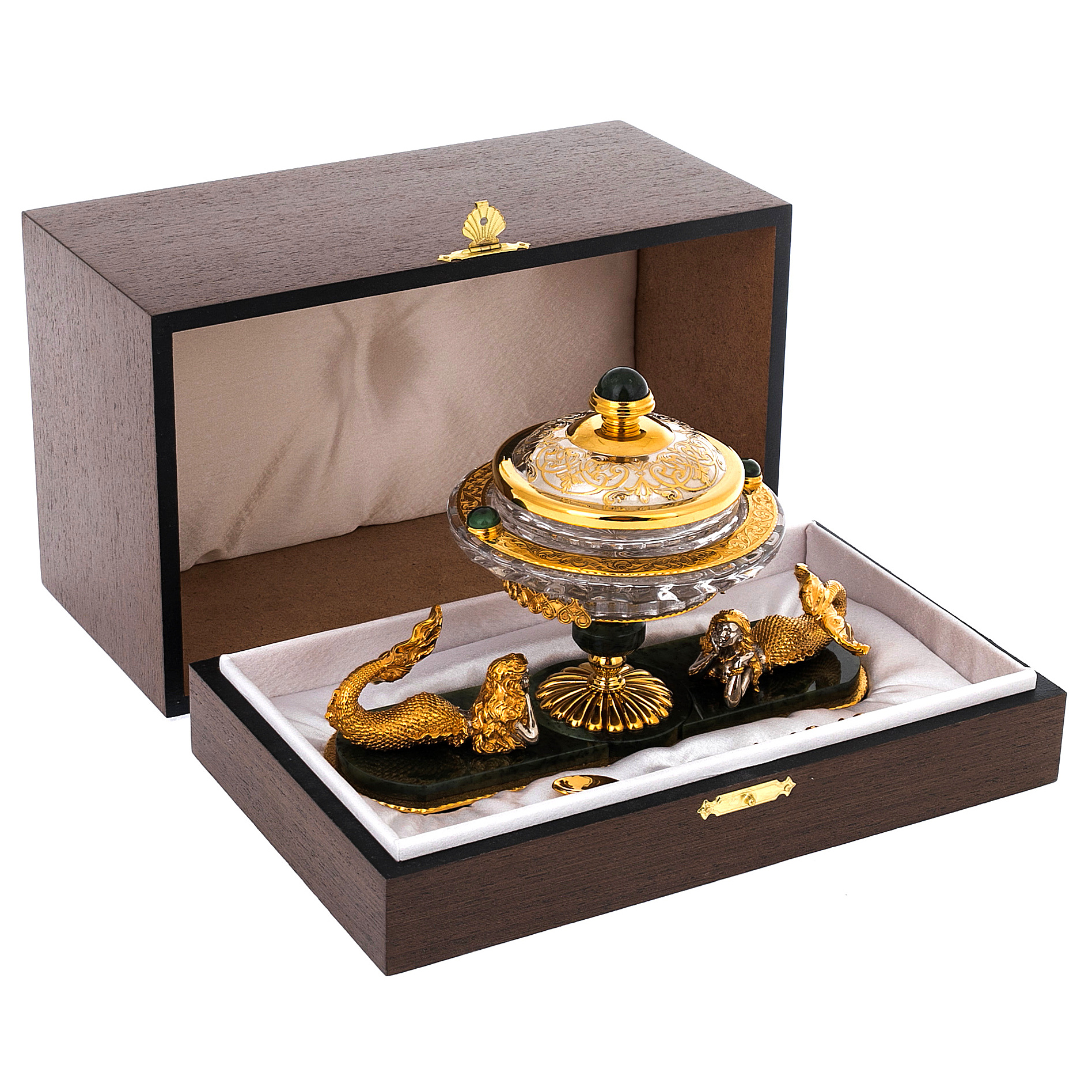 Материалы:латунь, никель, стекло, золото, нефрит.