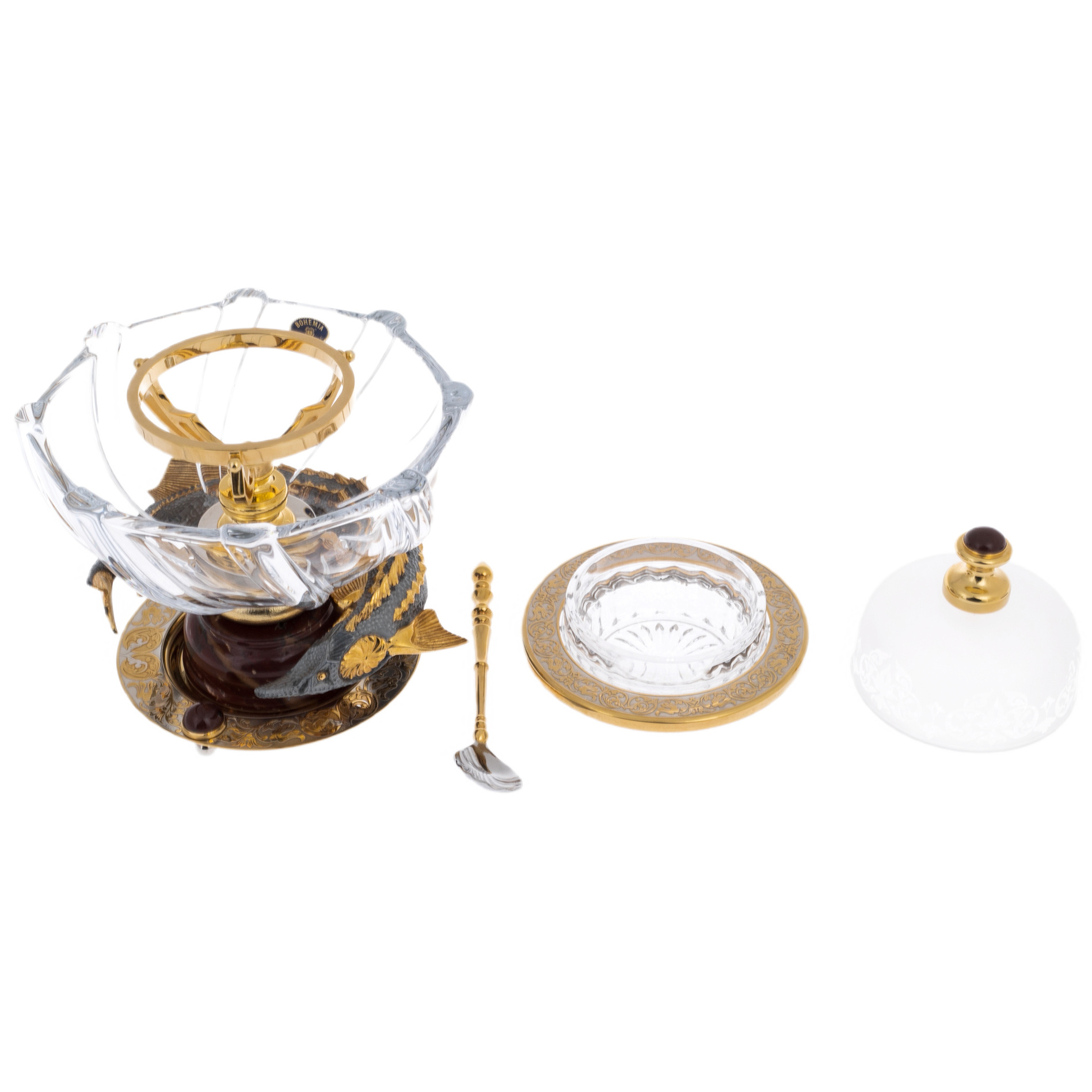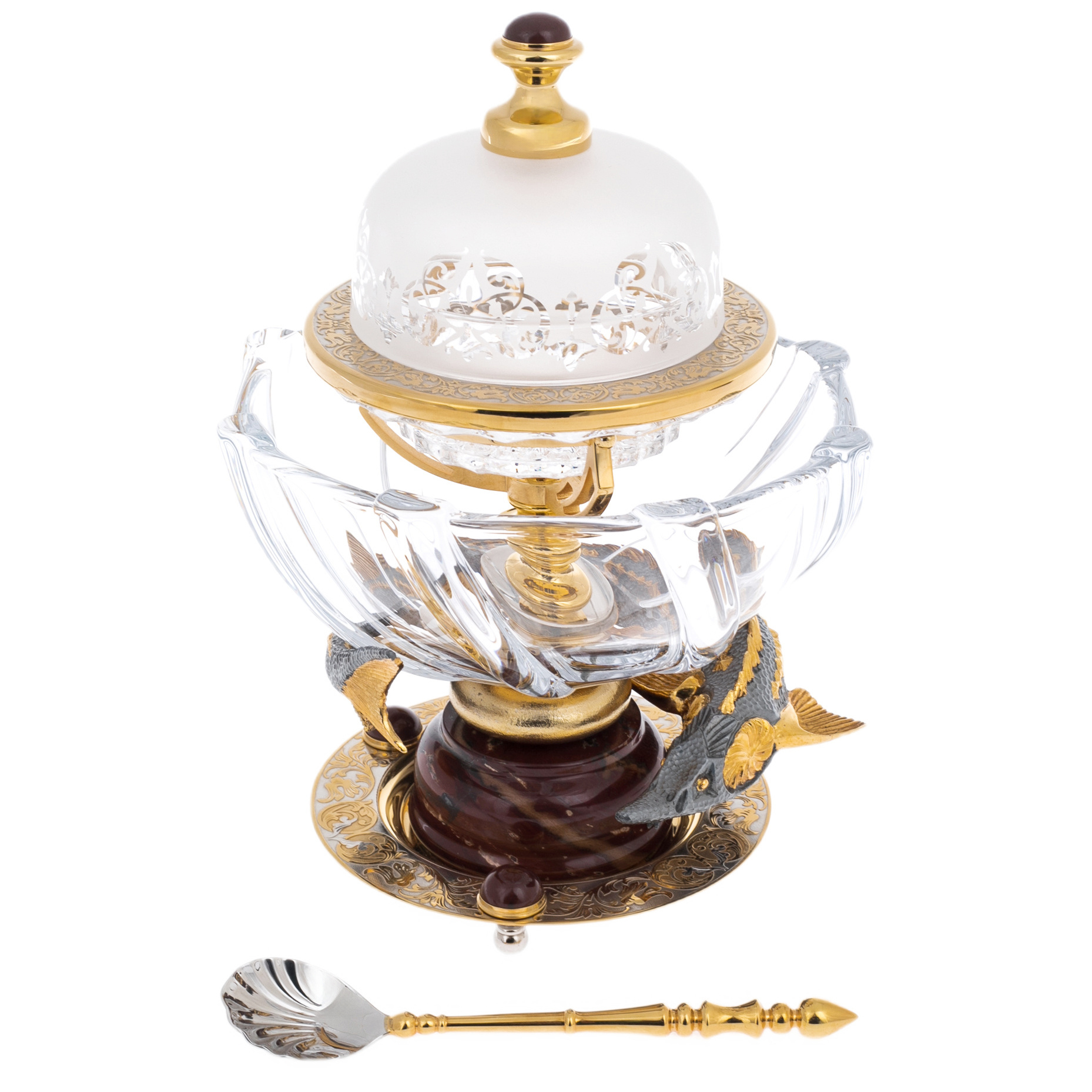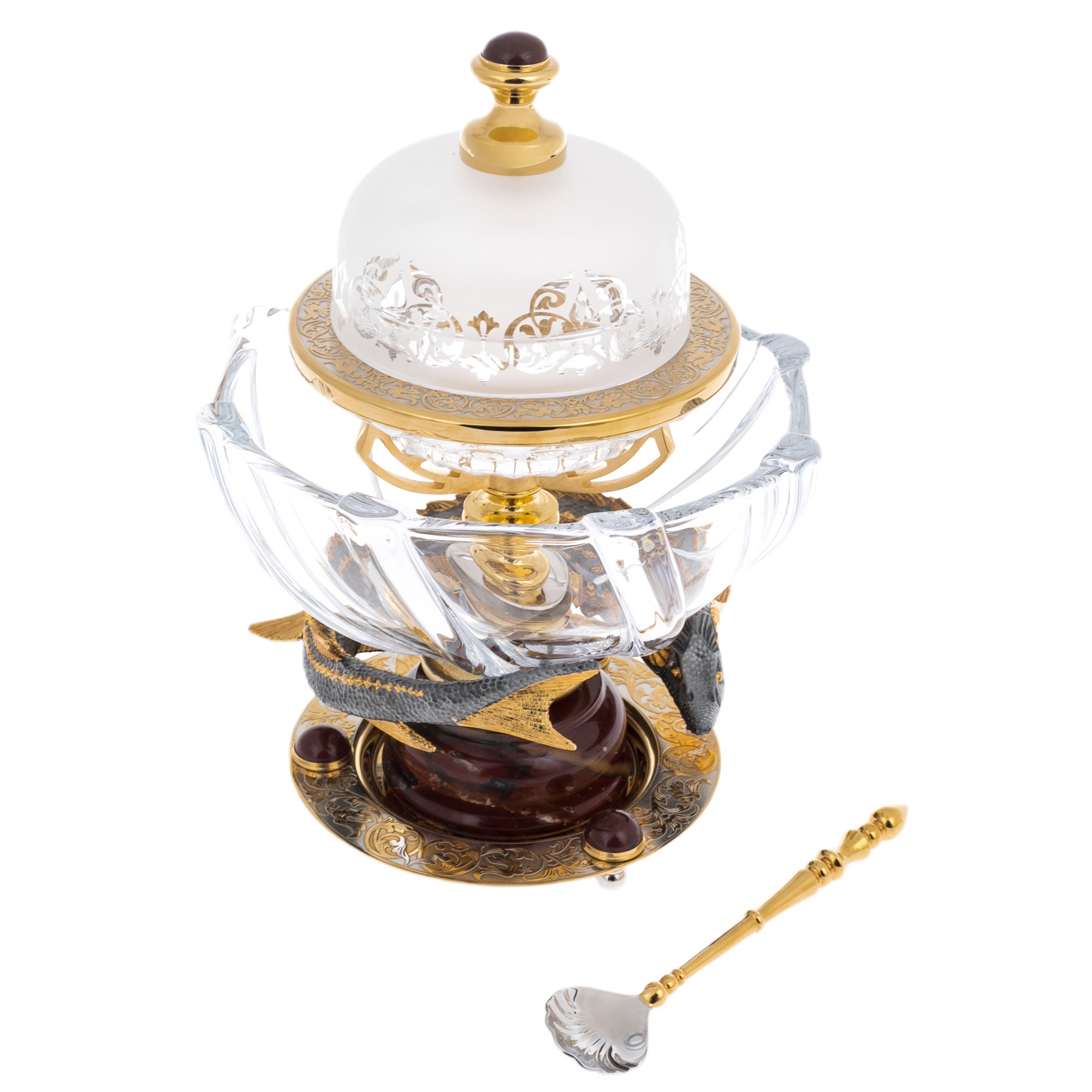 Икорница с ледовницей "Посейдон" на подставке из яшмы, Златоуст