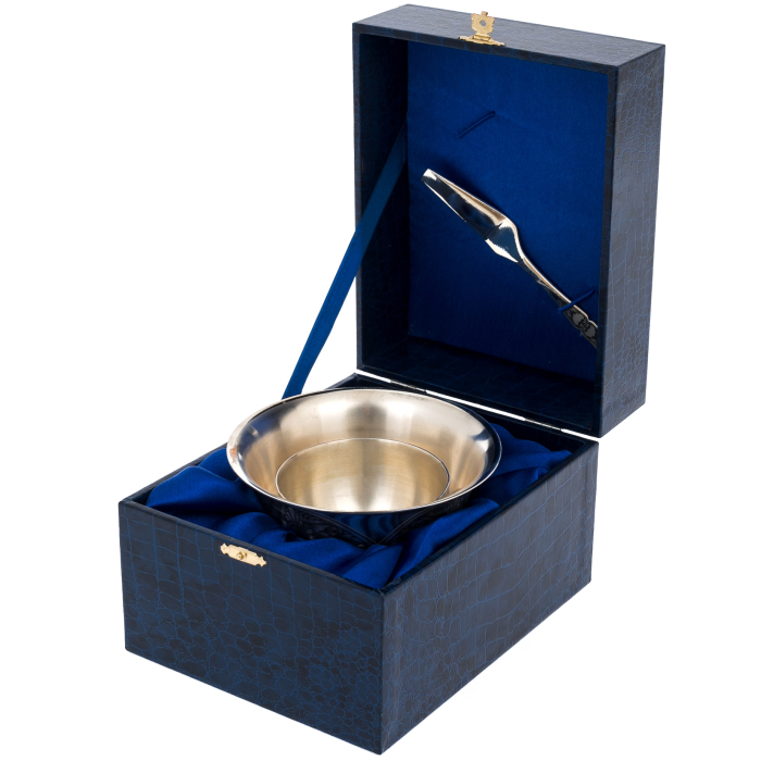 Икорница серебряная с лопаткой "Черновой рисунок"