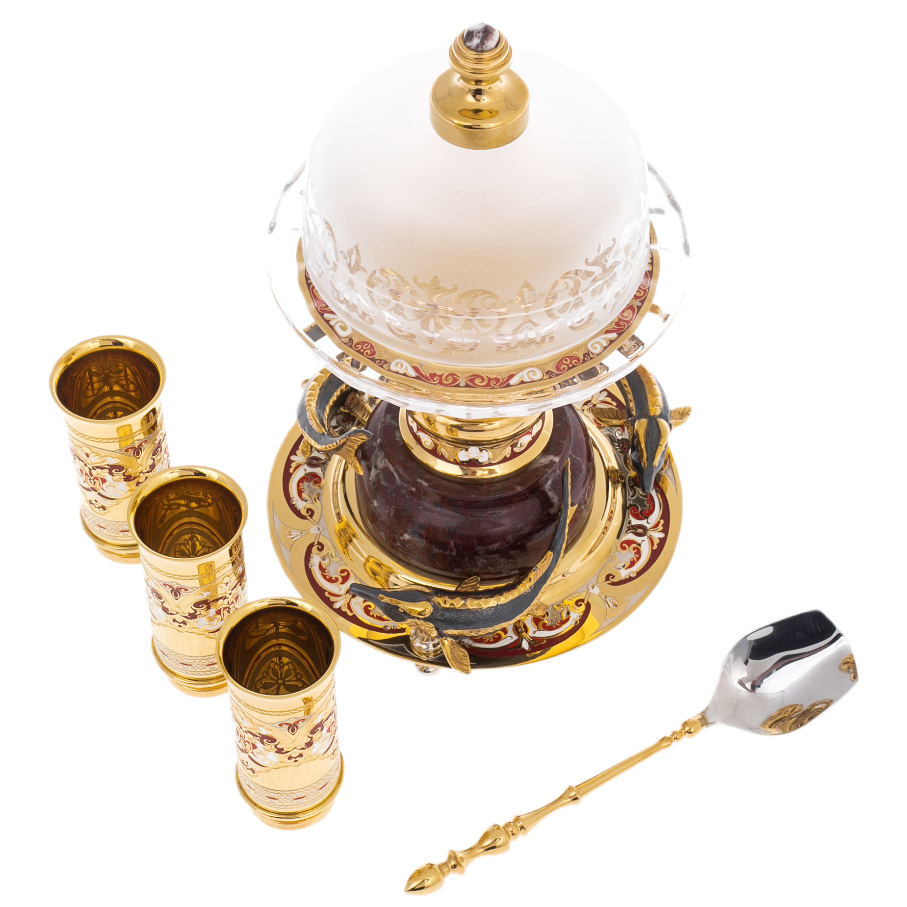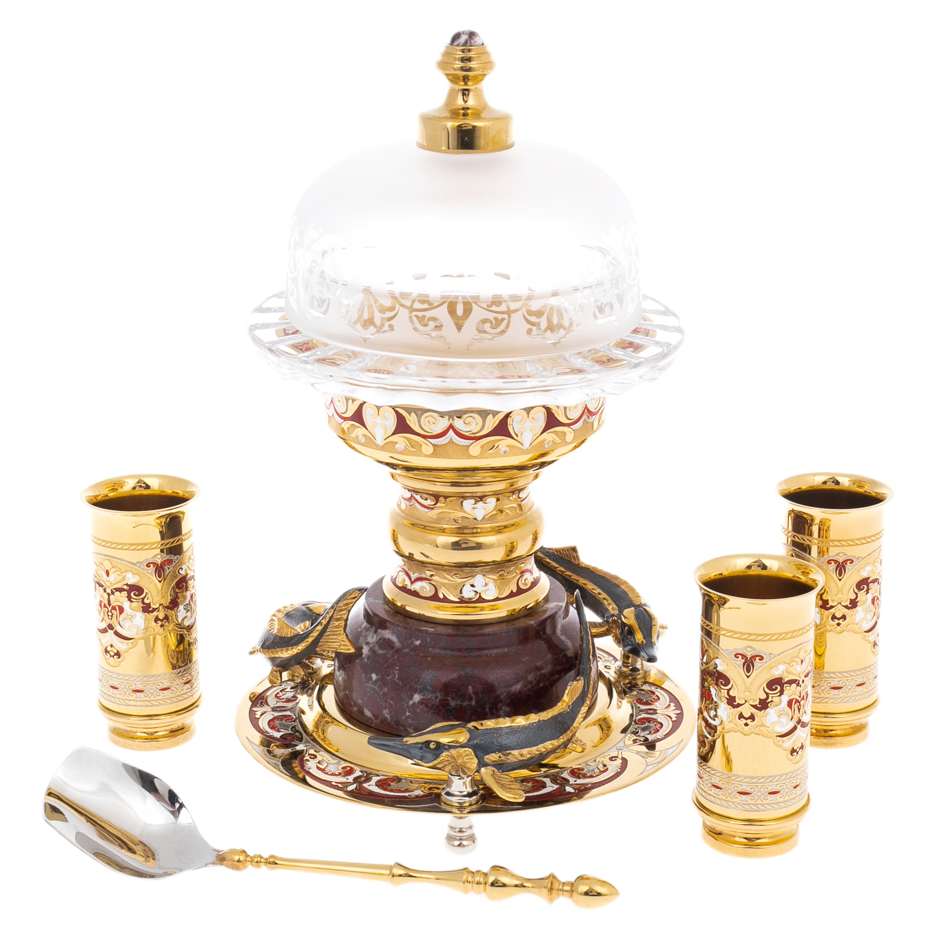 Набор для водки с икорнцей "Дары Нептуна" с яшмой и эмалью, Златоуст