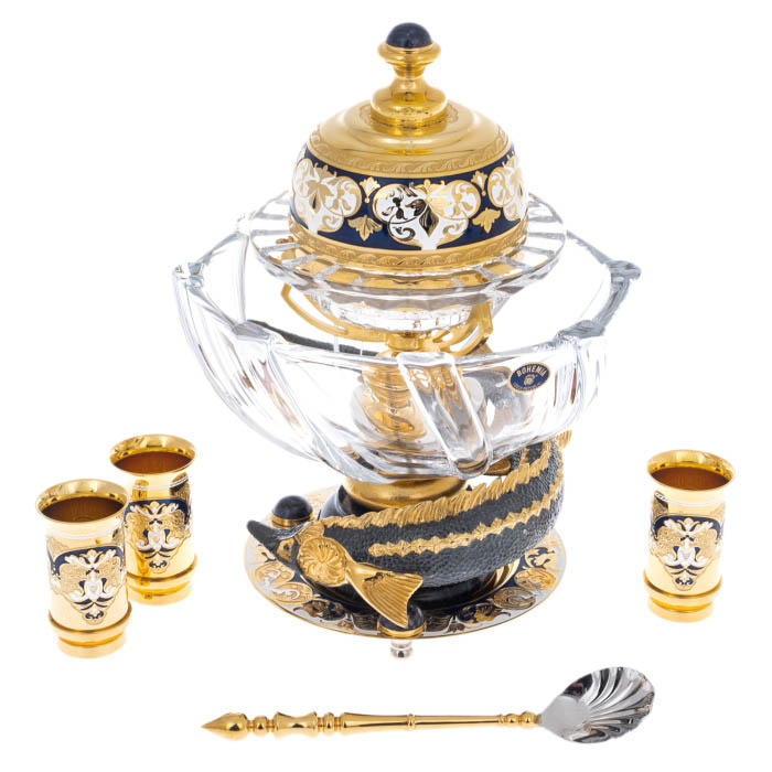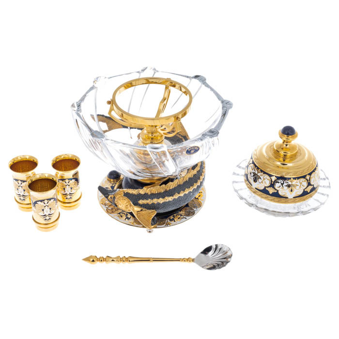 Икорный набор на содалите "Посейдон" с рюмками, на 3 персоны, Златоуст