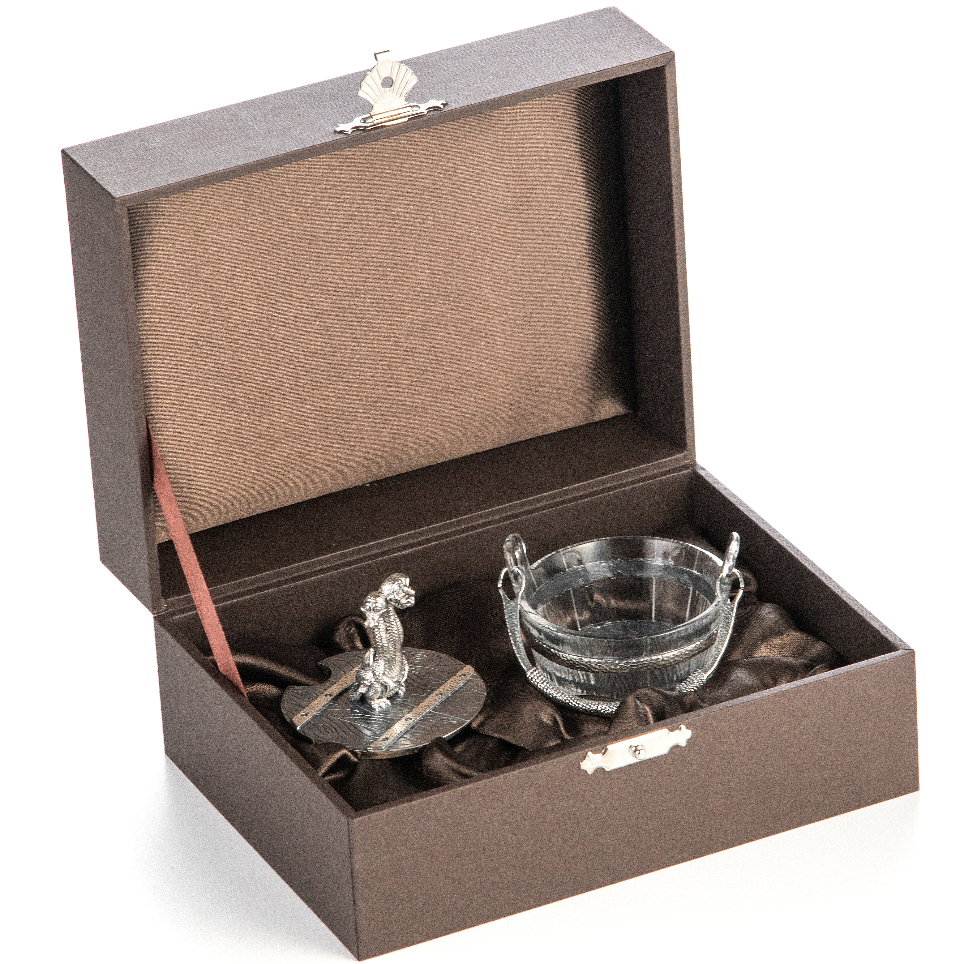 Икорница из серебра и хрусталя "Змей Горыныч" с ложечкой