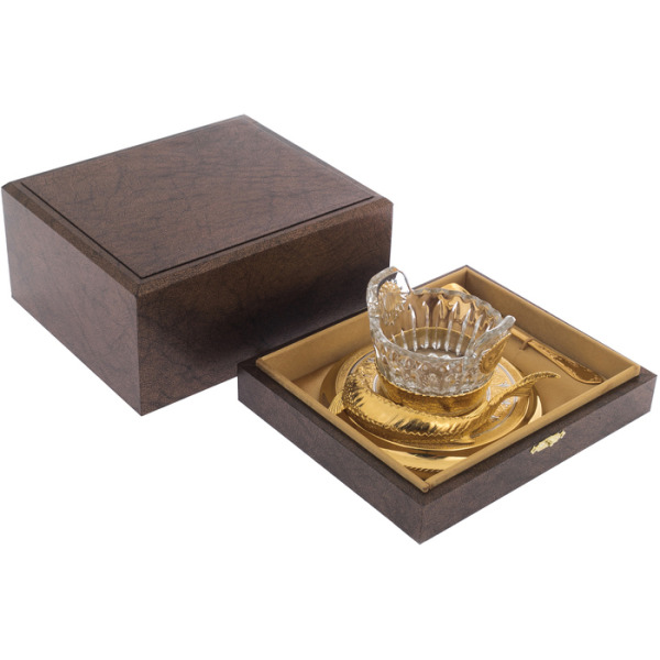 Икорница создана для тех, кто умеет наслаждаться деталями и ценит весомую классику. Она уместна в антикварной сервировке, на дипломатическом ужине, в личной коллекции или как статусный подарок человеку с безупречным вкусом. В сочетании с хрусталём, серебряными ложками и икрой деликатных сортов, она создаёт образ трапезы, в которой всё подчинено гармонии формы и содержания. Это предмет, говорящий не о моде, а о непреходящих ценностях: достоинстве, традиции и стремлении к совершенству.