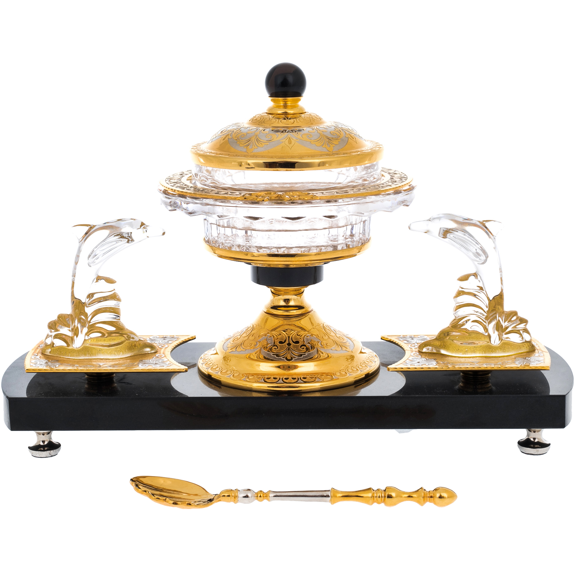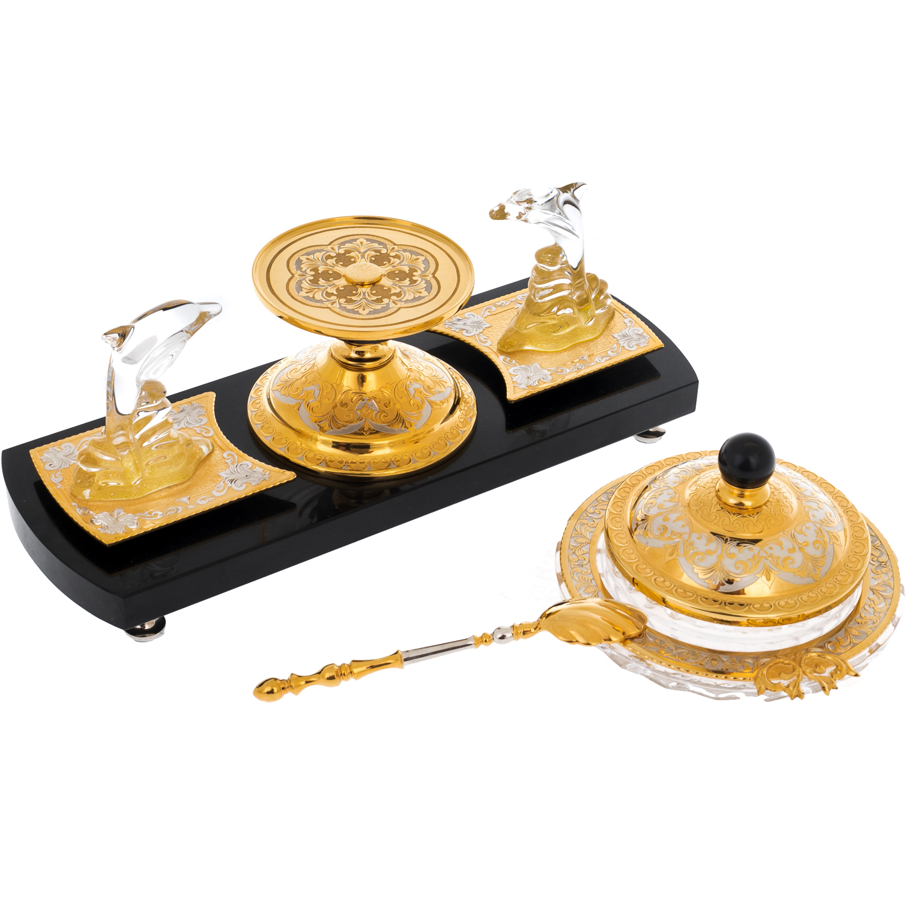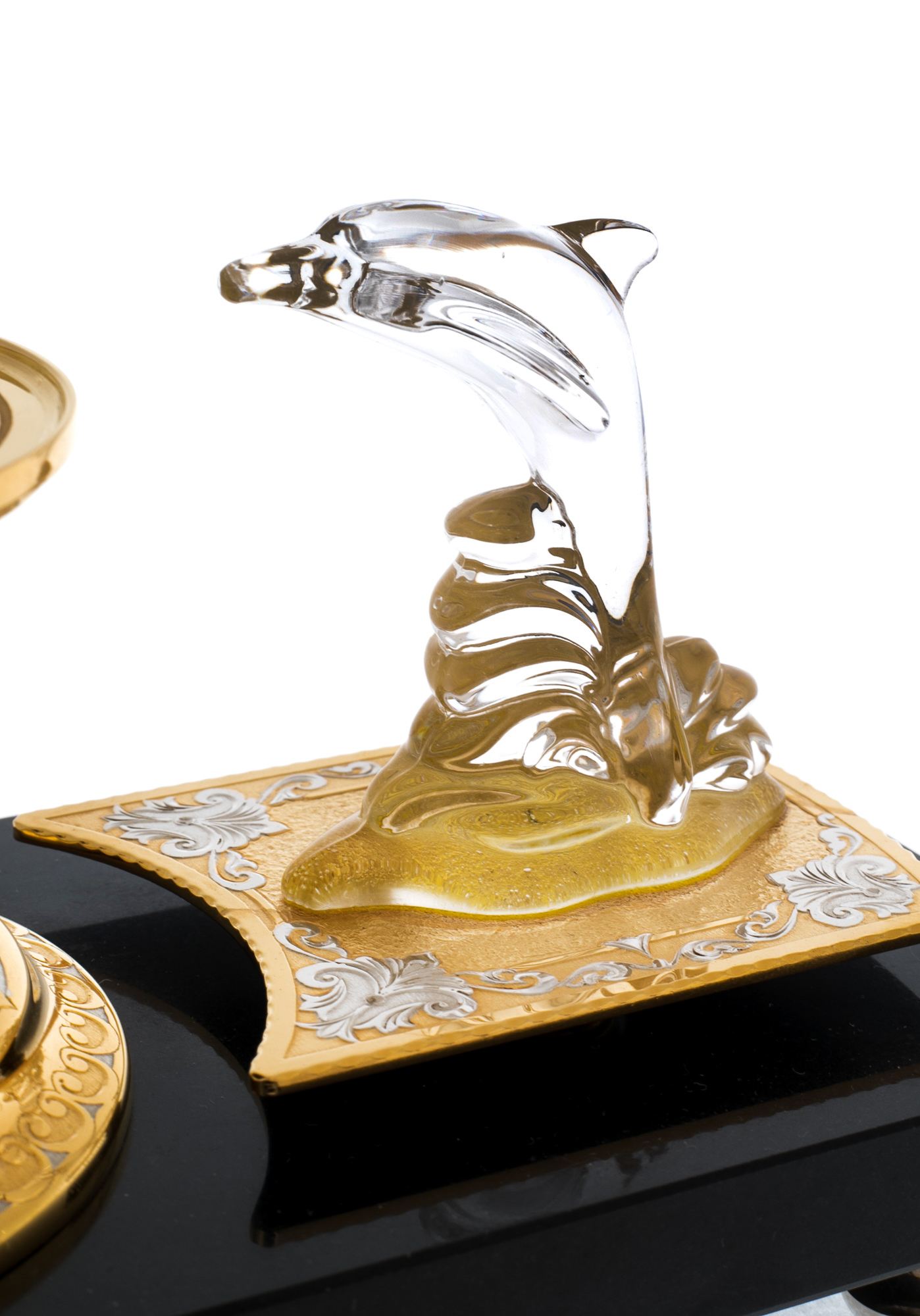 Материалы:латунь, никель, хрусталь, долерит, позолота, никель.