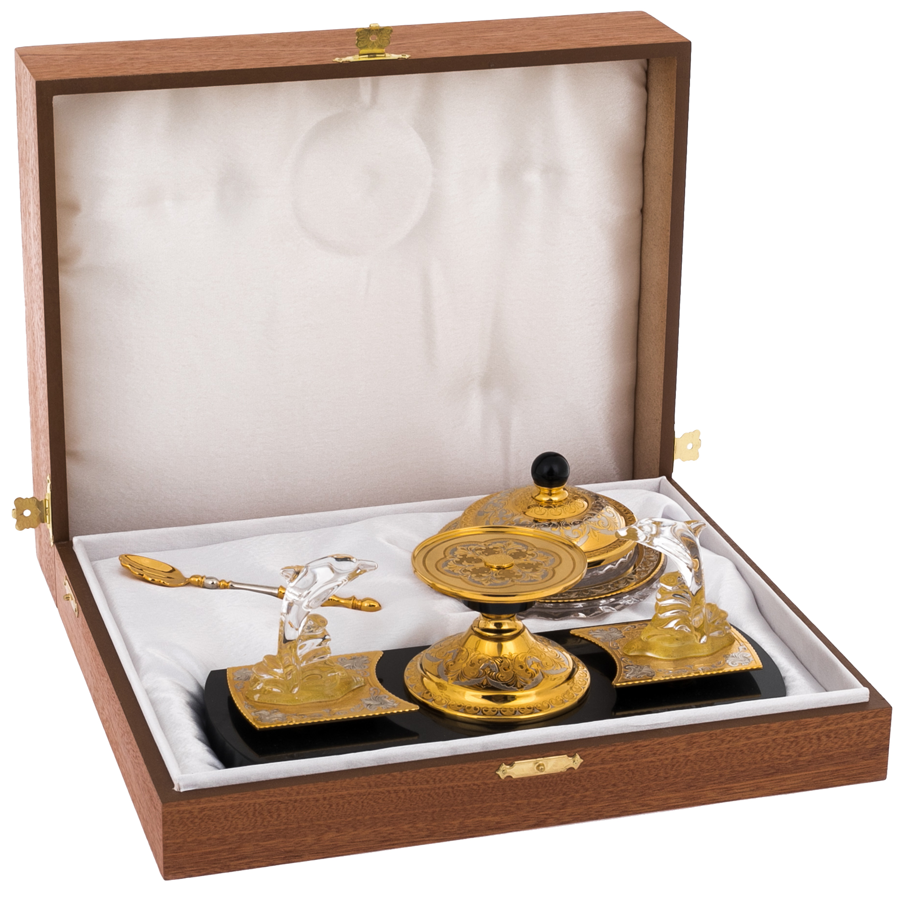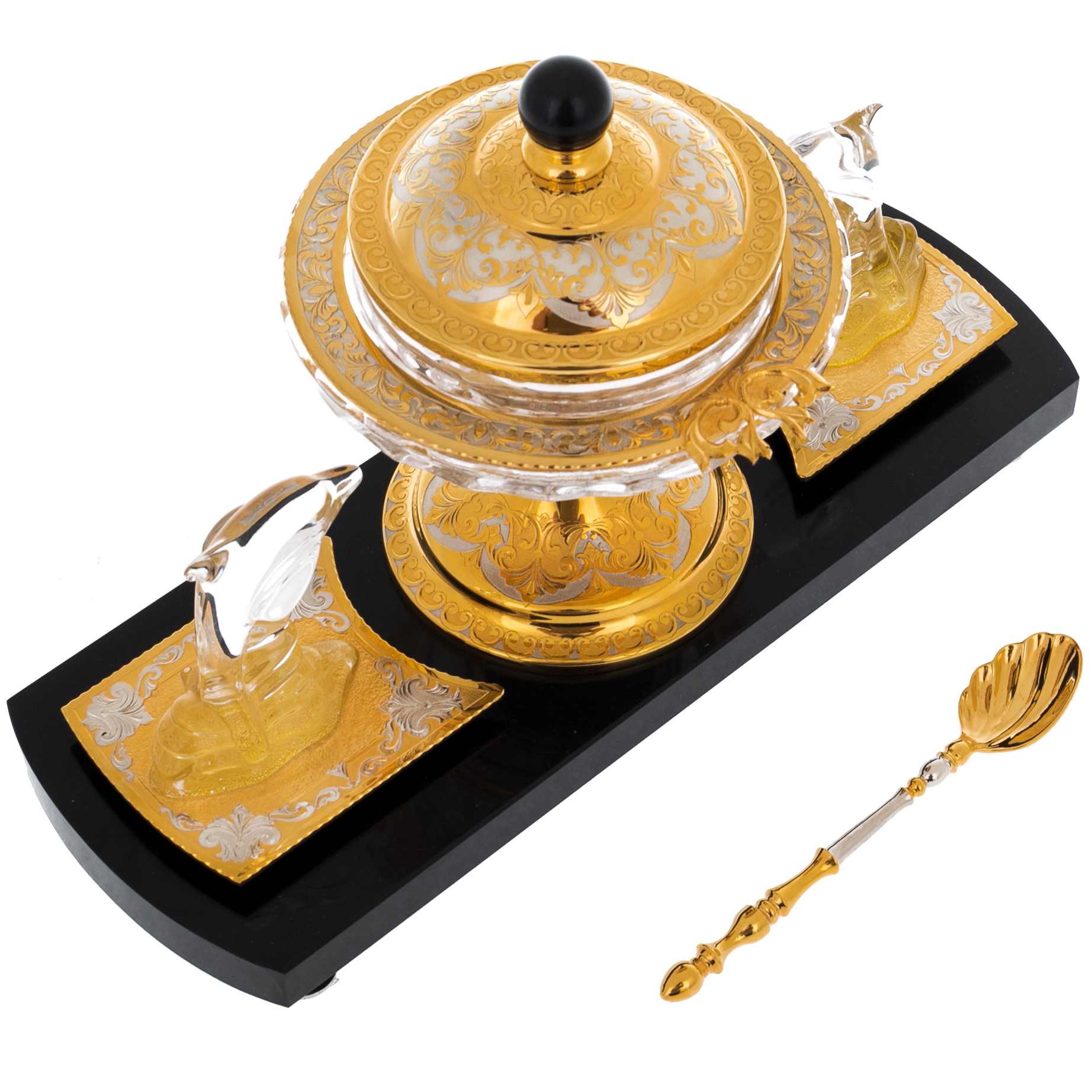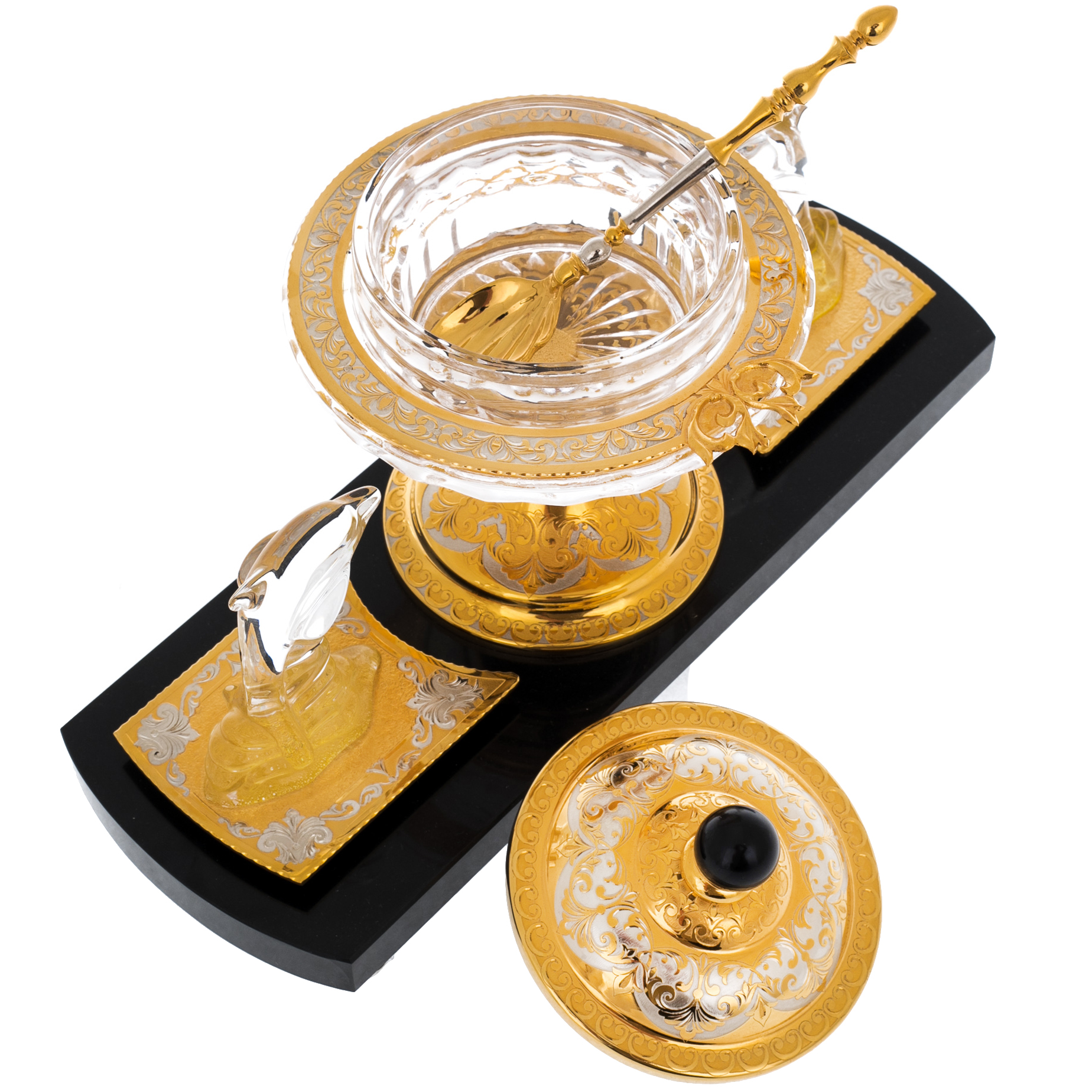Материалы:латунь, никель, хрусталь, долерит, позолота, никель.
