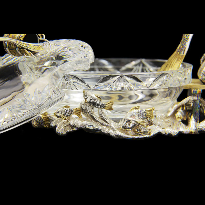 Комплектация:икорница серебряная «По щучьему велению», лопаточка для икры «Щука».