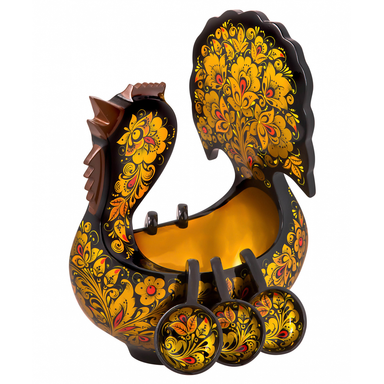 Ковш-павлин с навесными ковшами" Кудрина Фантазия" хохлома