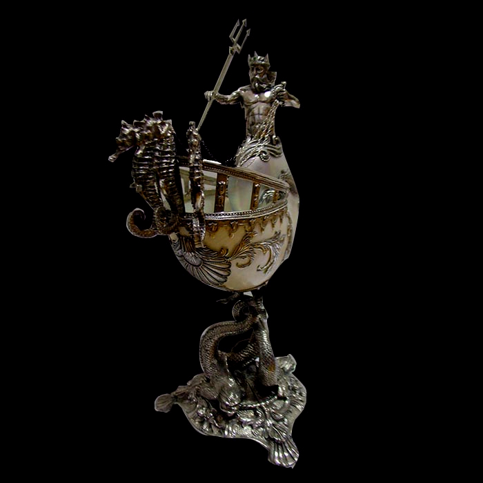 Благородный блеск серебра в сочетании с уникальными узорами раковины Nautilus придают кубку неповторимый характер, а каждая линия и деталь рассказывают о мастерстве и внимании к деталям.