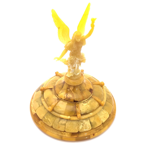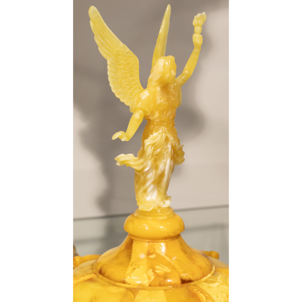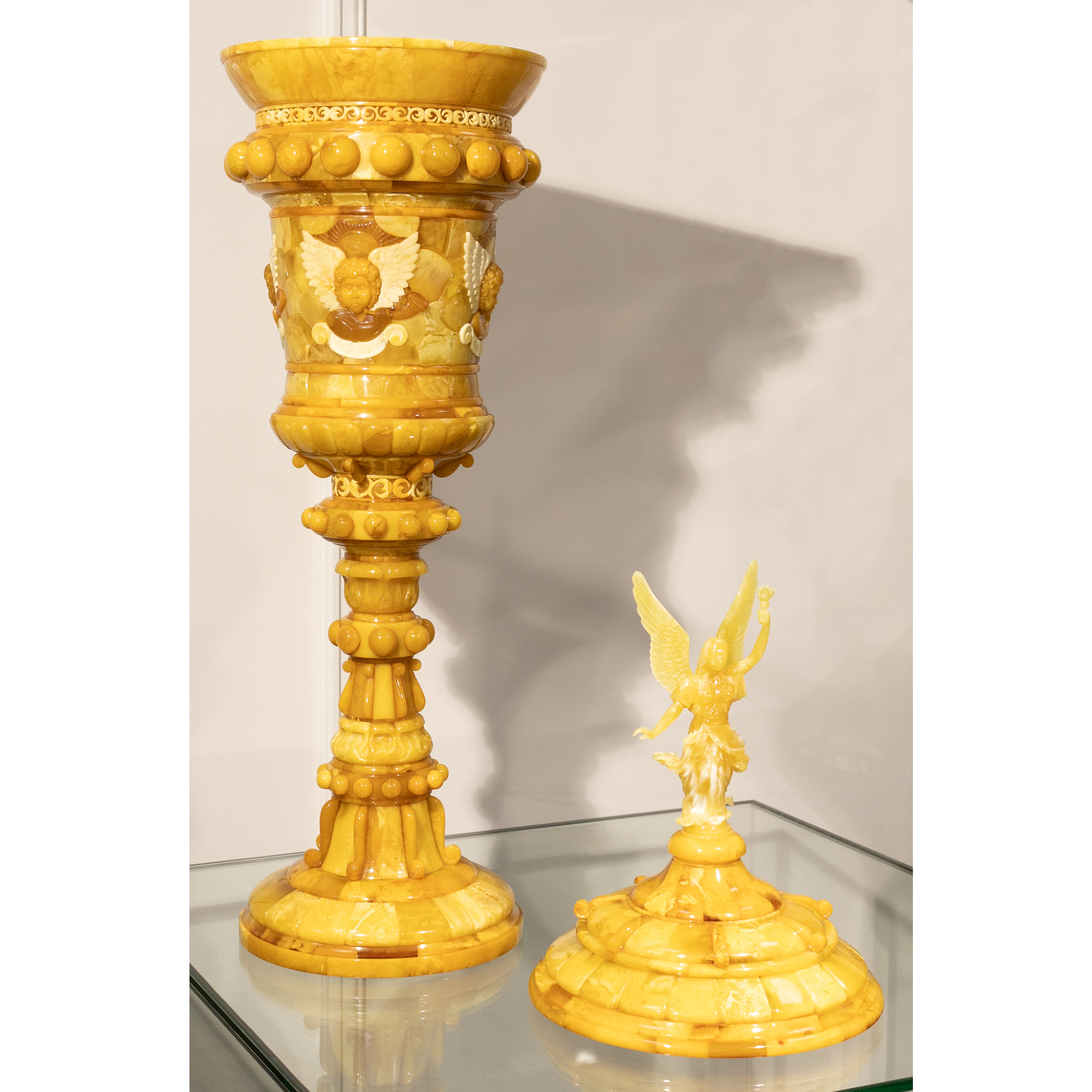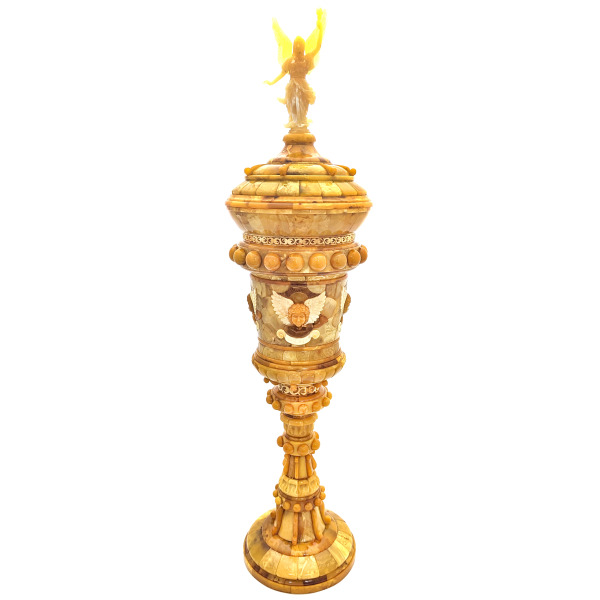 Янтарный кубок «Победа» — это застывшее в свете торжество духа, величественный монумент не человеку — идее. Как если бы солнечный луч однажды коснулся земли и, проникнув вглубь веков, окаменел в форме янтаря, чтобы через тысячелетия возродиться в этом произведении искусства. Этот кубок — не сосуд. Это алтарь, вознесённый в честь бессмертной воли к жизни, света, триумфу.