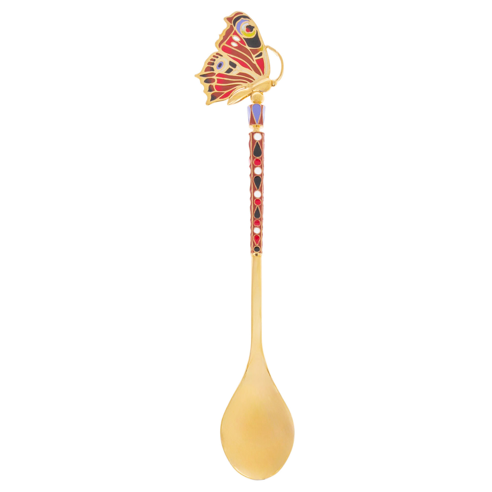 Чайная ложечка из серебра с позолотой "Павлиний глаз" на 1 персону