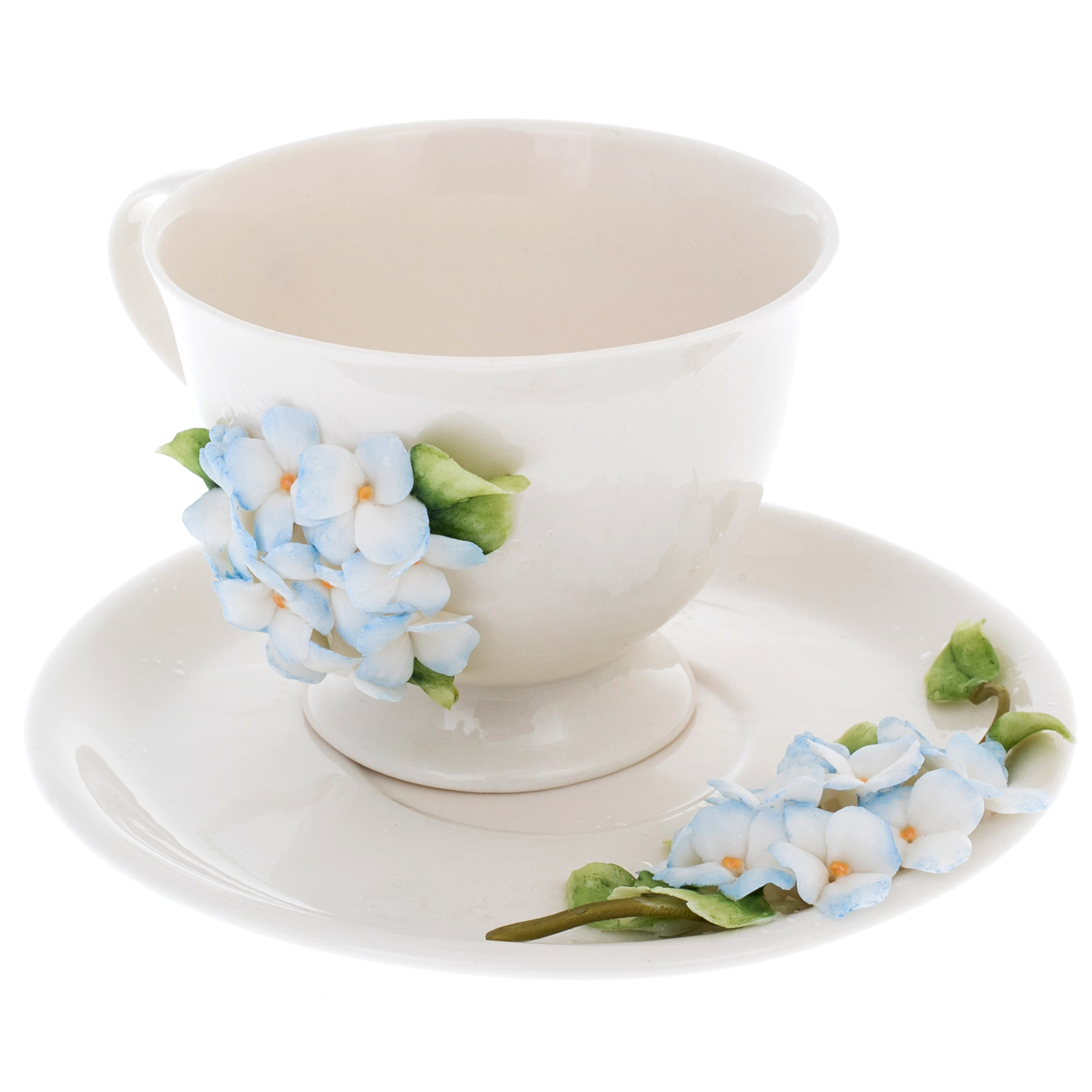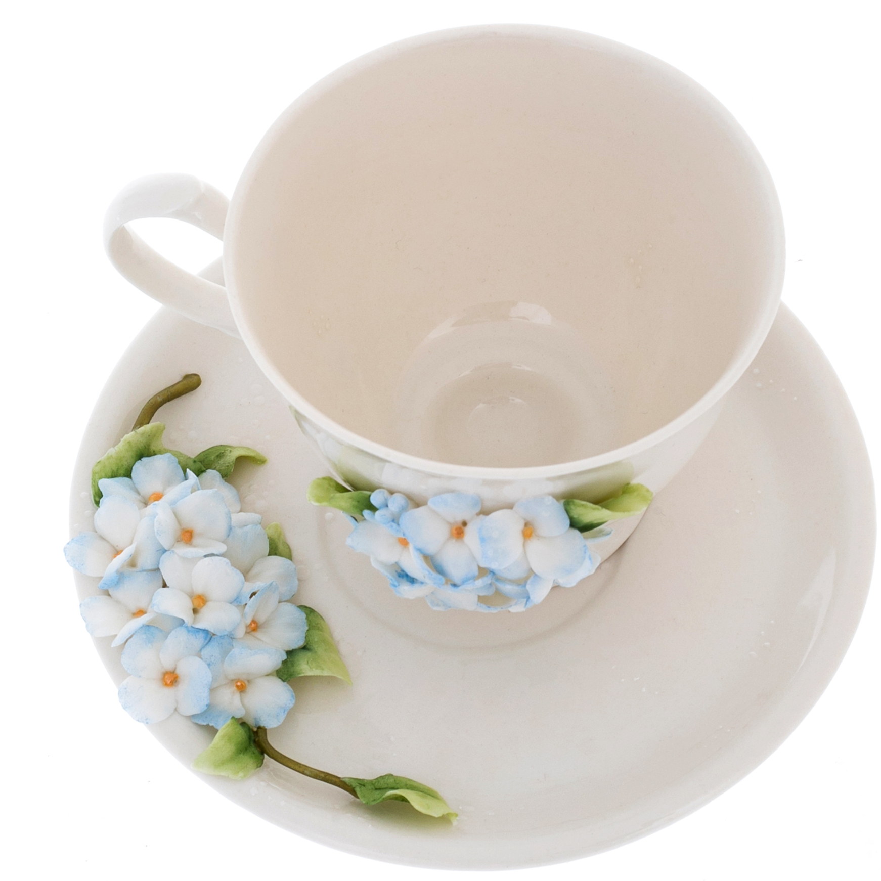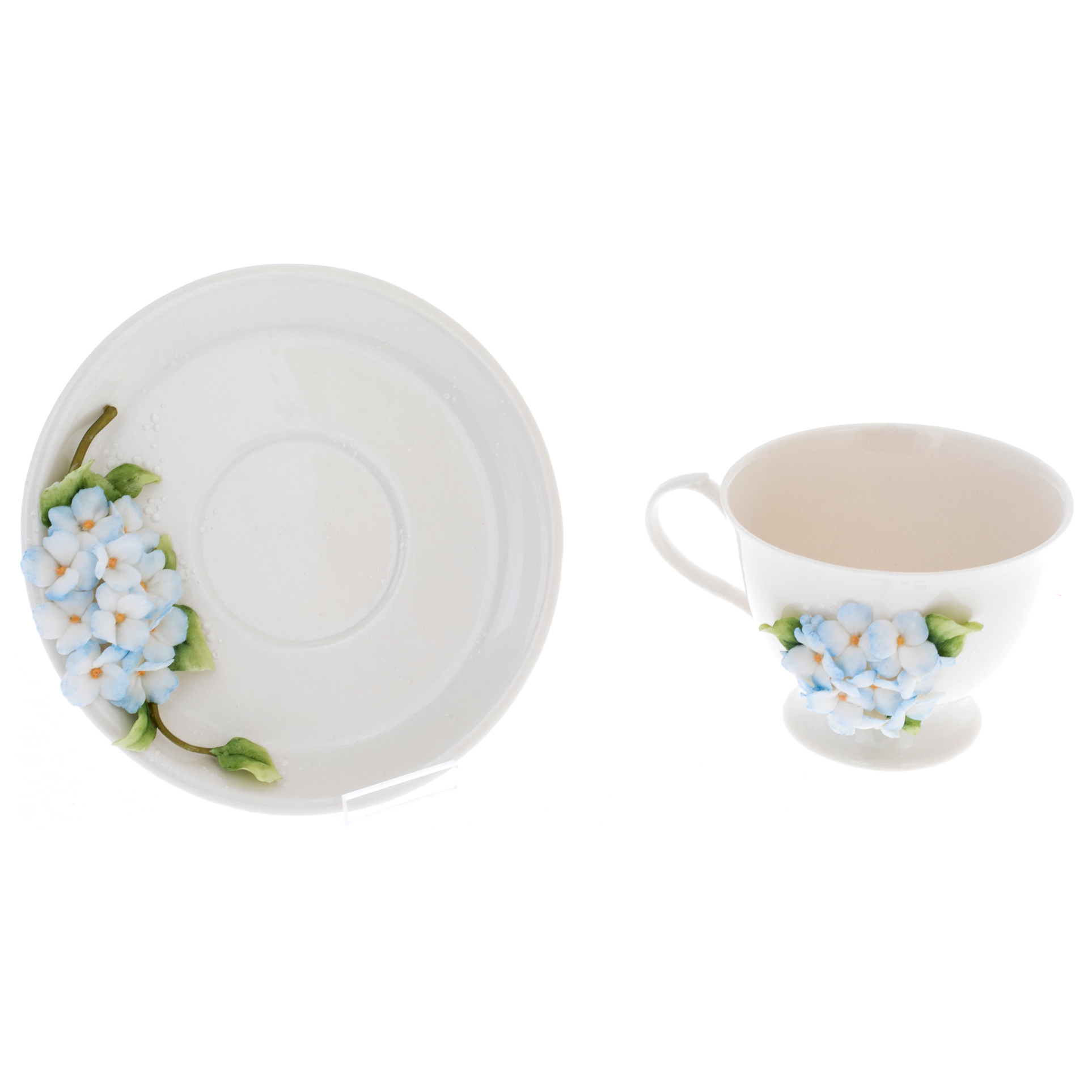 Чайная пара из фарфора "Гортензия" на 1 персону, голубая