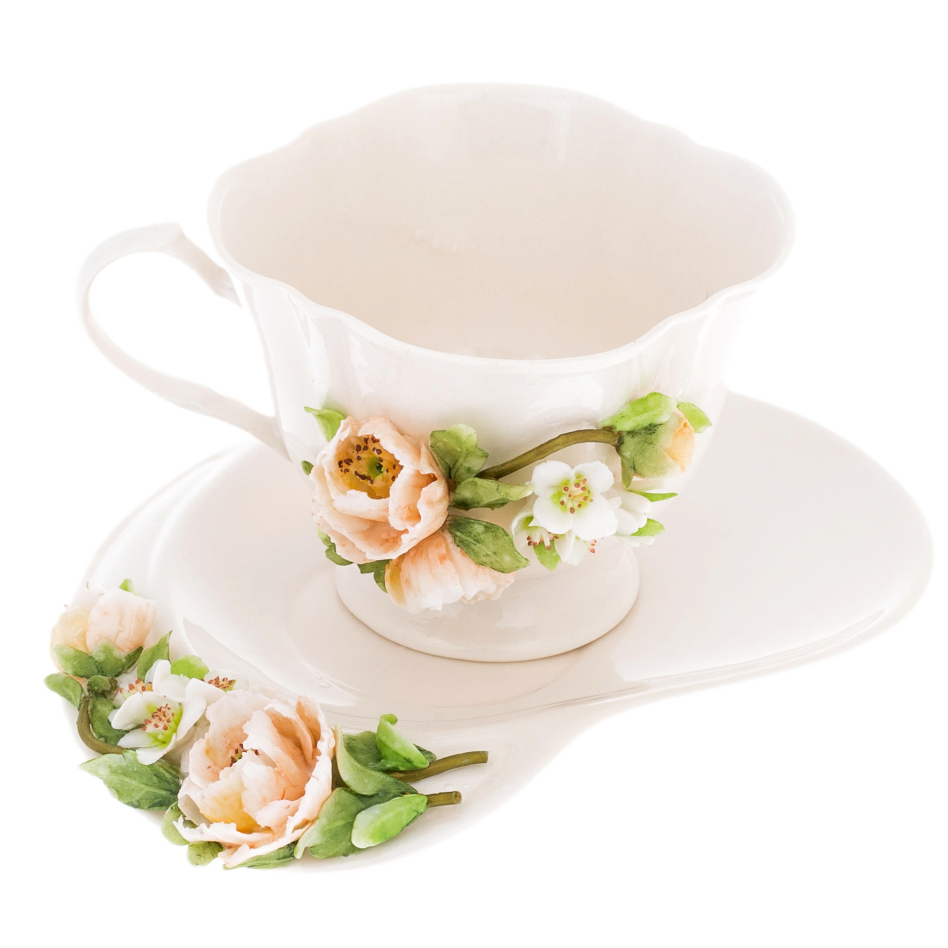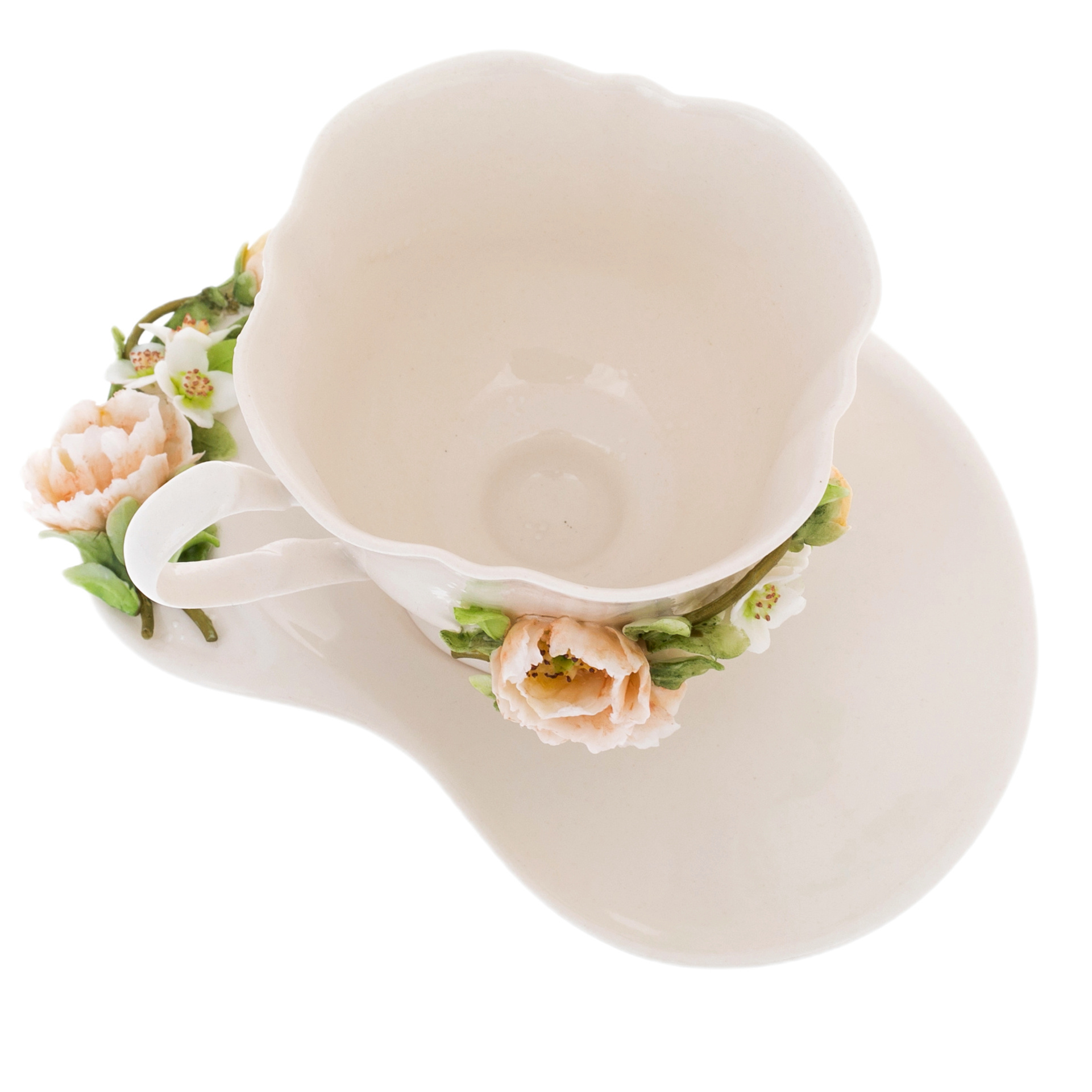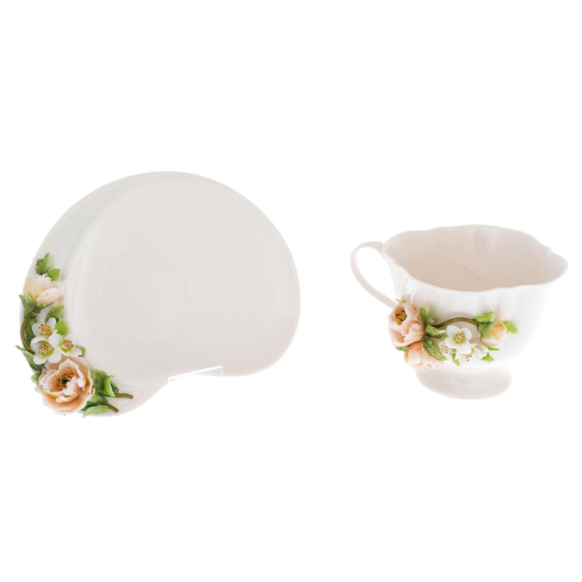 Чайная пара из фарфора "Роза и яблоневый цвет" на 1 персону