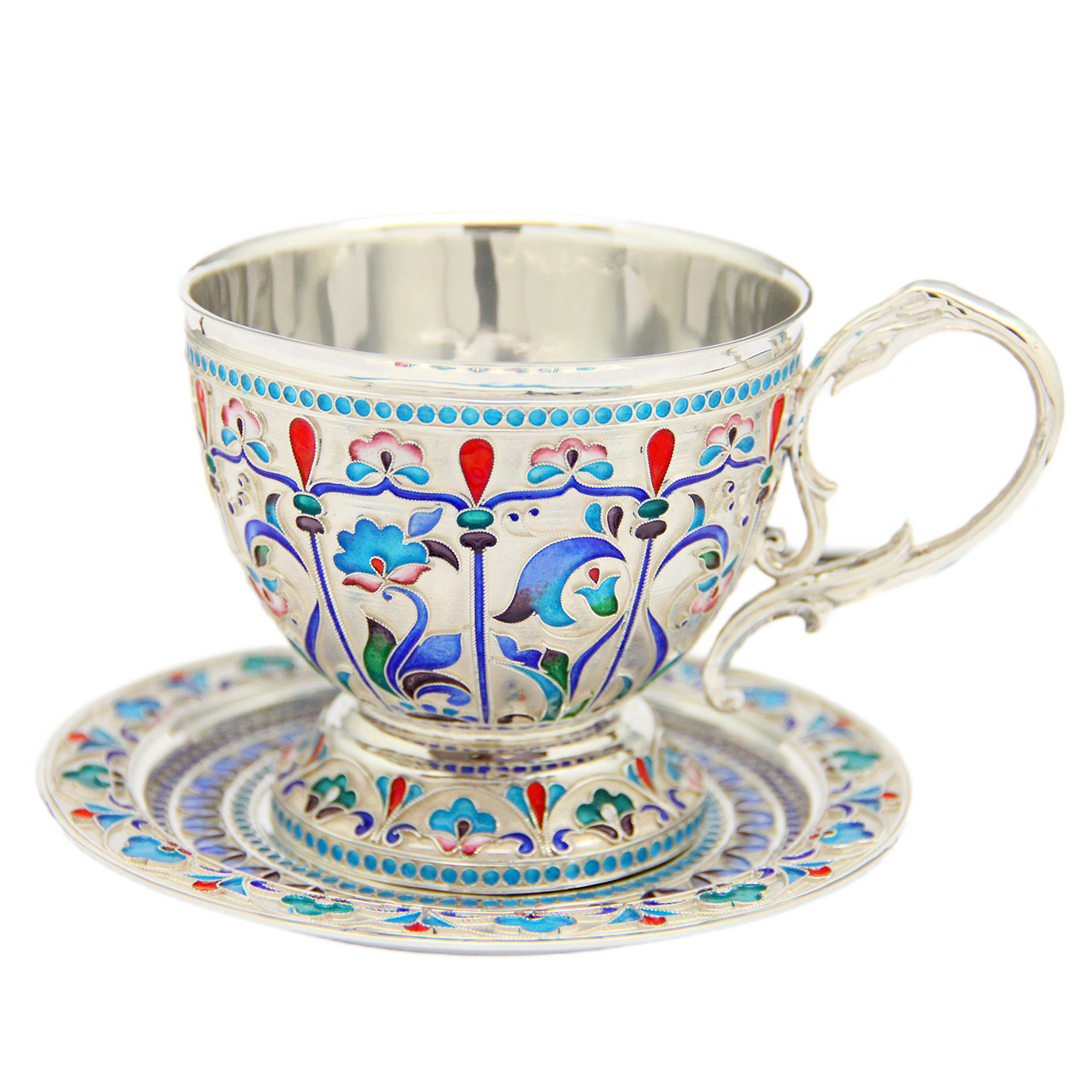 Чайная пара из серебра "Боярский" на 1 персону, финифть