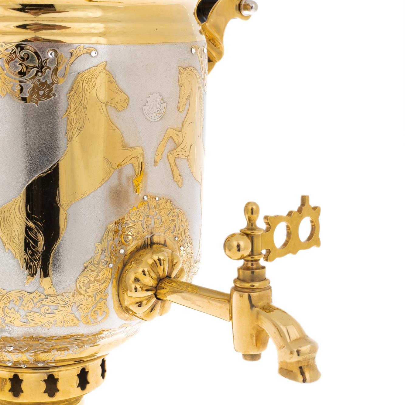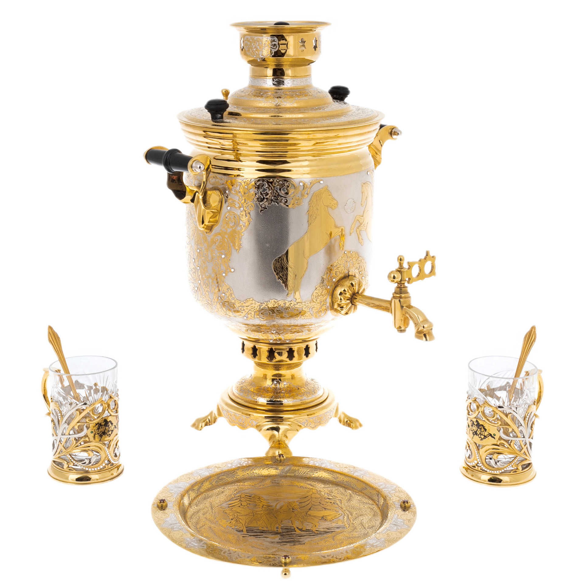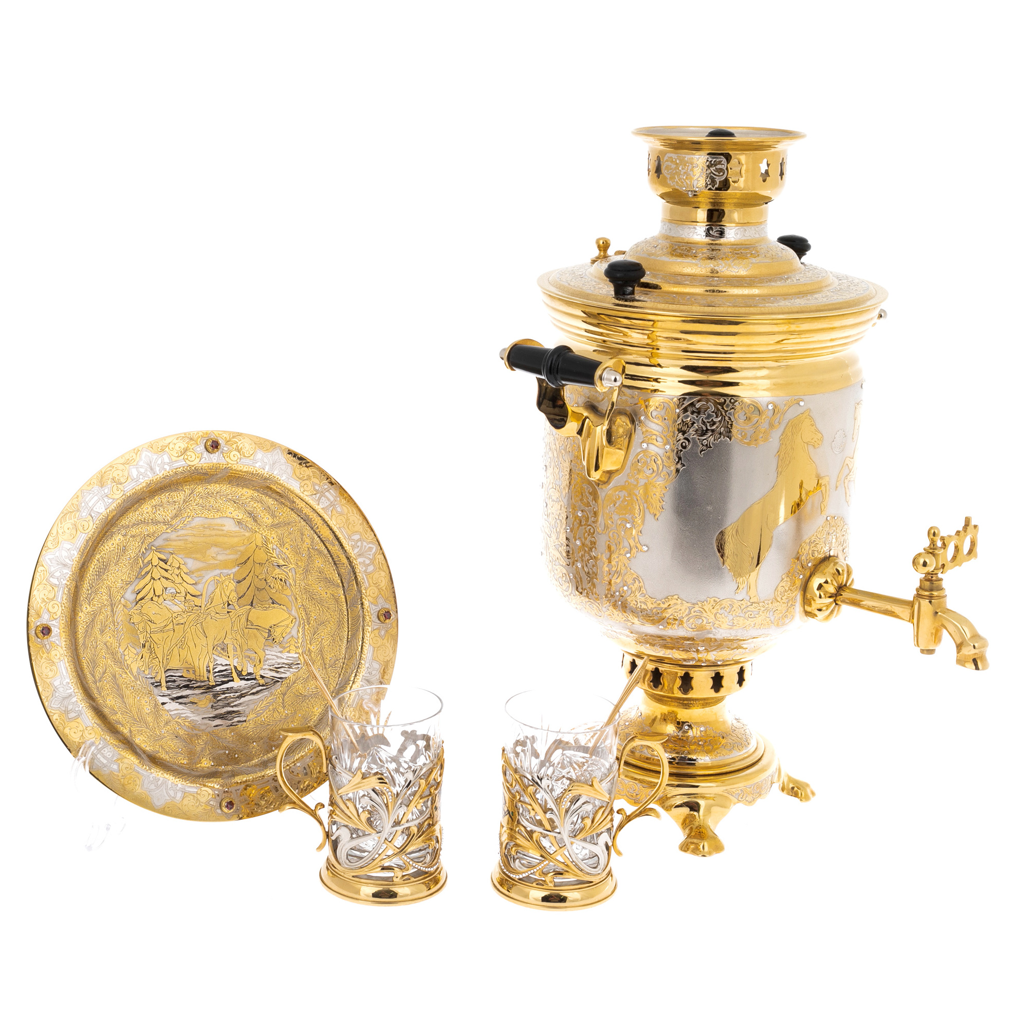 Чайный набор "Престиж" на 2 персоныЧайный набор "Престиж" на 2 персоныКоллекции изящной посуды от мастеров из Златоуста эффектно декорированы росписью, травлением и золочением. После того, как на полированную поверхность наносится изящный рисунок, изделие сушится в печи и подвергается обработке, после которого рисунок становится рельефным.