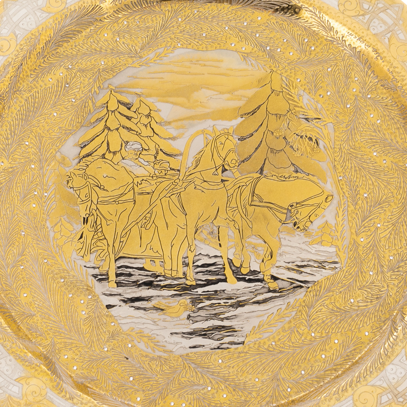 Коллекции изящной посуды от мастеров из Златоуста эффектно декорированы росписью, травлением и золочением. После того, как на полированную поверхность наносится изящный рисунок, изделие сушится в печи и подвергается обработке, после которого рисунок становится рельефным.