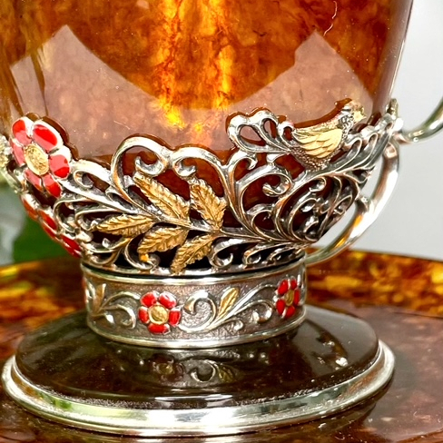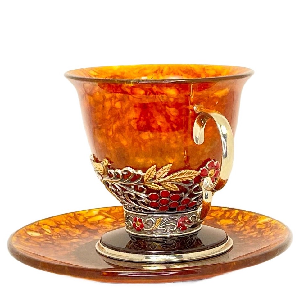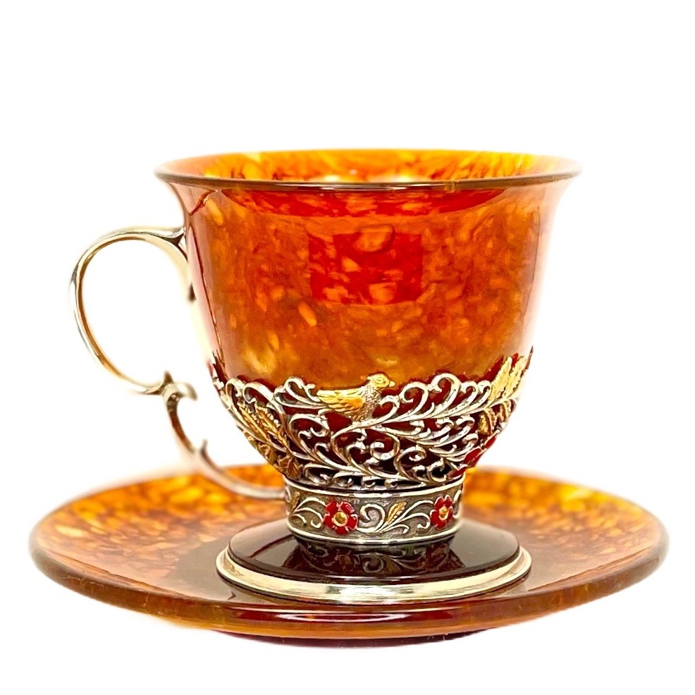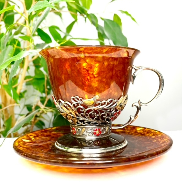 Чайная чашка из янтаря и бронзы "Хохлома"