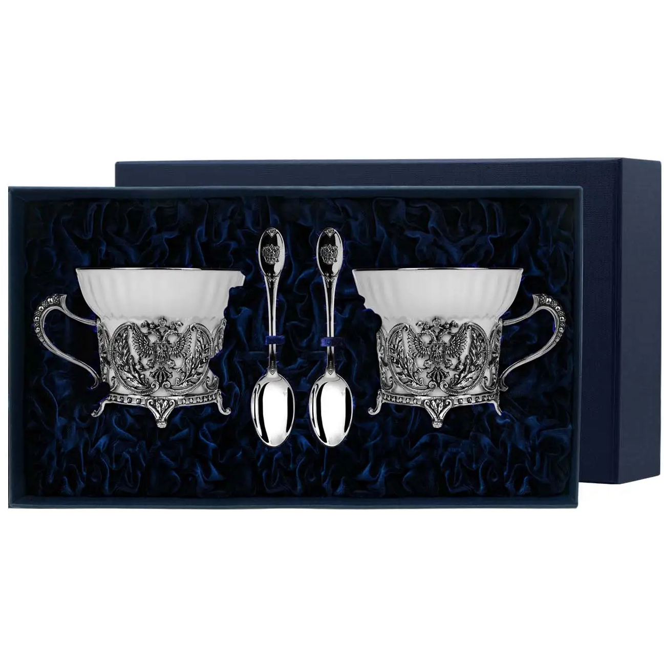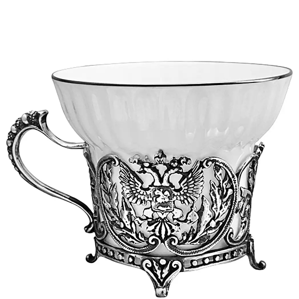 Чайная чашка из серебра "Герб" с ложкой, чернение