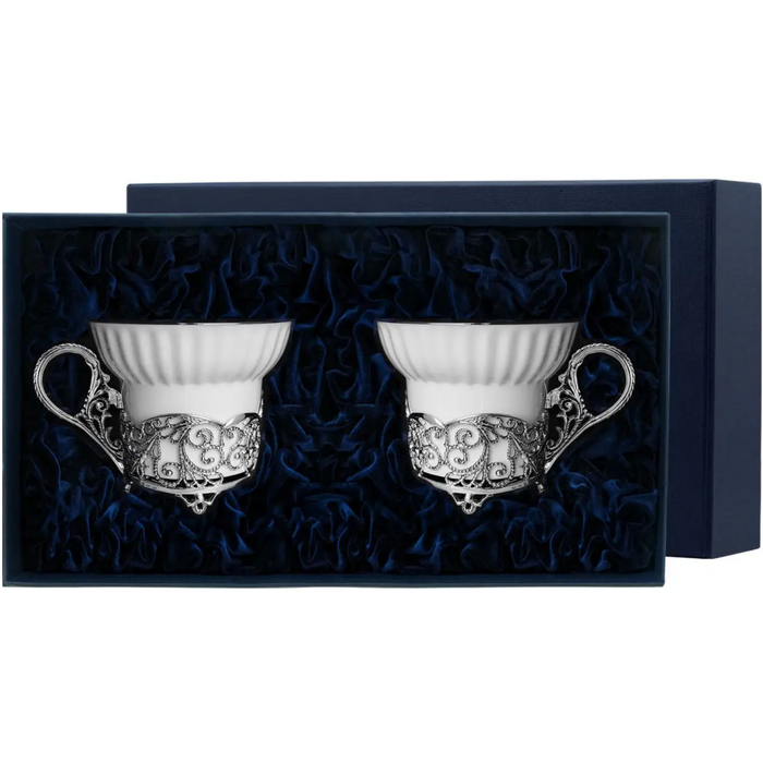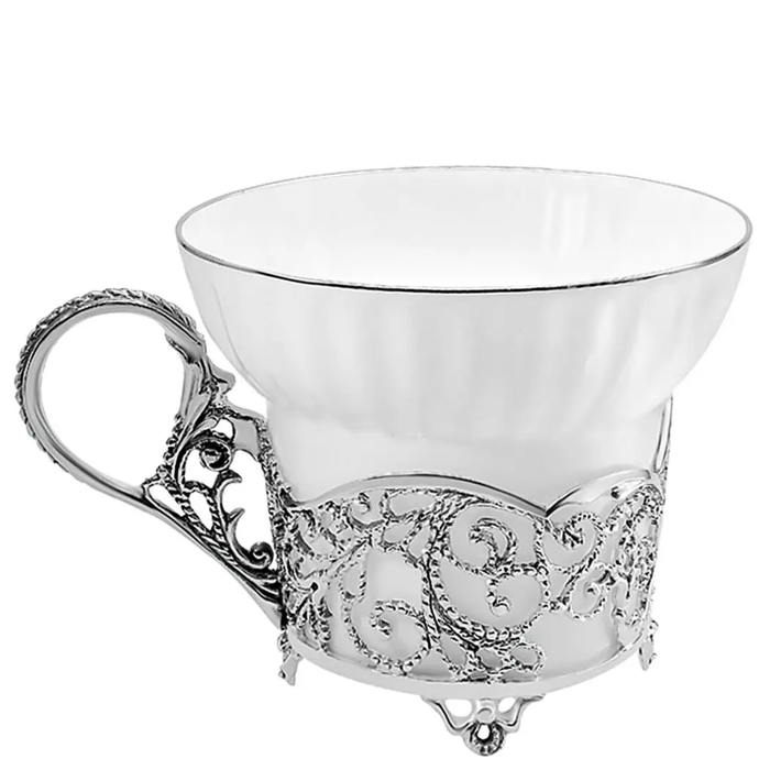 Чайная чашка "Кружевные узоры" с чернением, серебро
