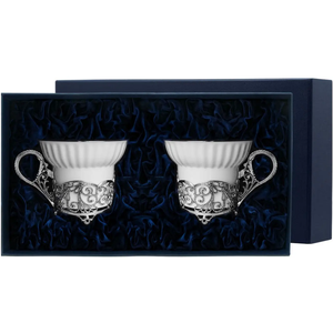АргентаНабор чайных чашек из серебра "Зимние узоры": ложка, чашкаНабор чайных чашек из серебра "Зимние узоры": ложка, чашкаСЕРЕБРО&ФАРФОР - эксклюзивная коллекция Фабрики серебра «АргентА», созданная совместно с Императорским фарфоровым заводом. В основу дизайна коллекции легла красота природы, которая в сочетании с многовековыми традициями русских мастеров приобрела новый притягательный смысл, элегантность и завораживающую грацию. Чайные и кофейные сервизы из тончайшего костяного фарфора в изысканном серебряном обрамлении поражают своей красотой и высокой детализацией.
