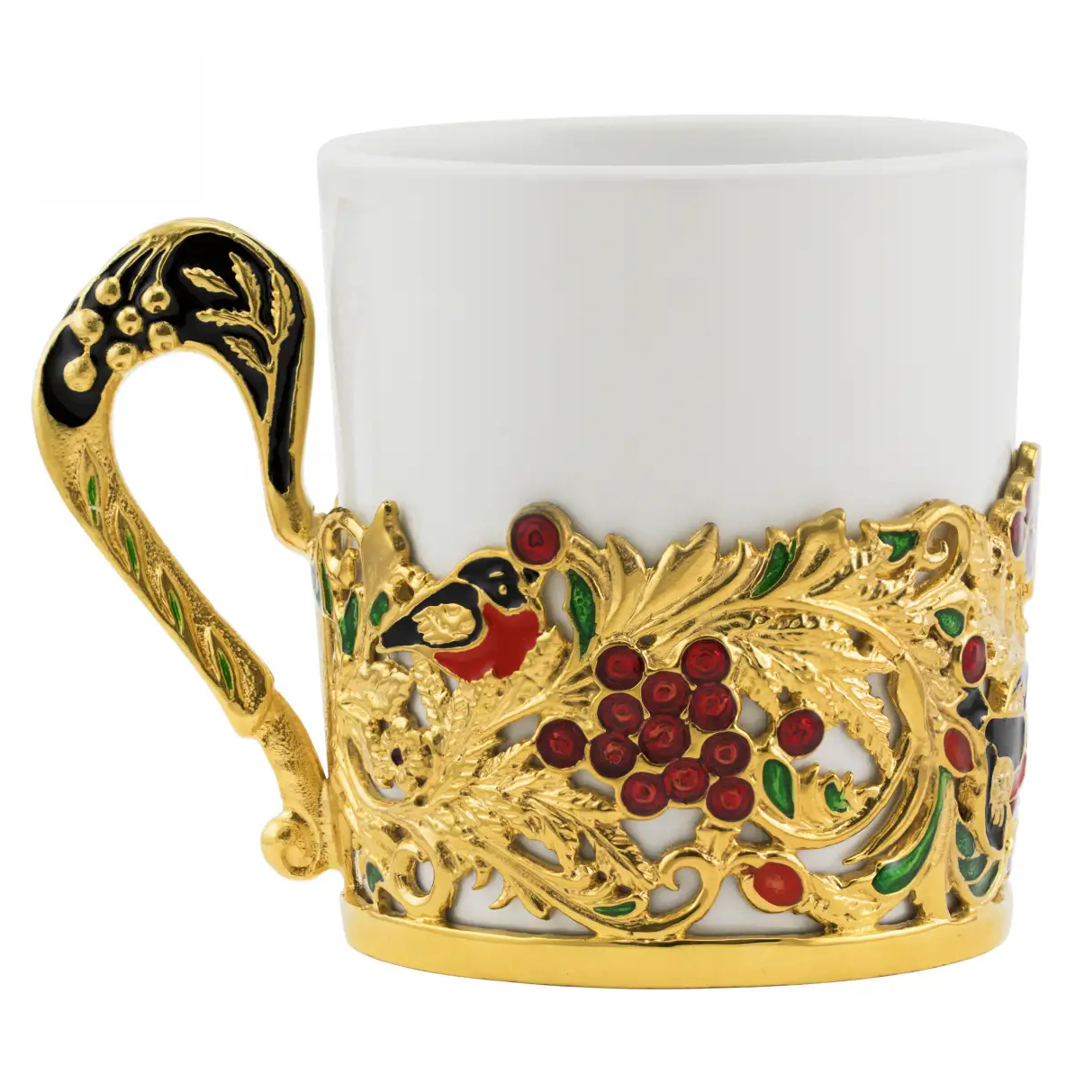 Чашка чайная "Рябина" никелированная с позолотой с эмалью