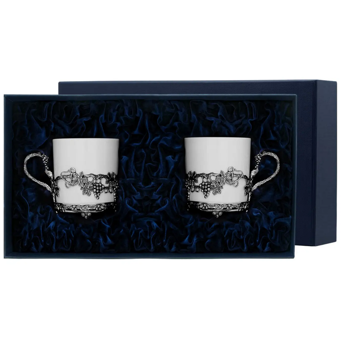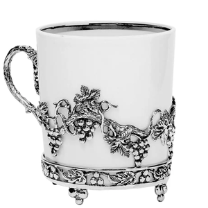 АргентаЧайная чашка из серебра "Виноград" с ложкойЧайная чашка из серебра "Виноград" с ложкойСЕРЕБРО&ФАРФОР - эксклюзивная коллекция Фабрики серебра «АргентА», созданная совместно с Императорским фарфоровым заводом. В основу дизайна коллекции легла красота природы, которая в сочетании с многовековыми традициями русских мастеров приобрела новый притягательный смысл, элегантность и завораживающую грацию. Чайные и кофейные сервизы из тончайшего костяного фарфора в изысканном серебряном обрамлении поражают своей красотой и высокой детализацией.
